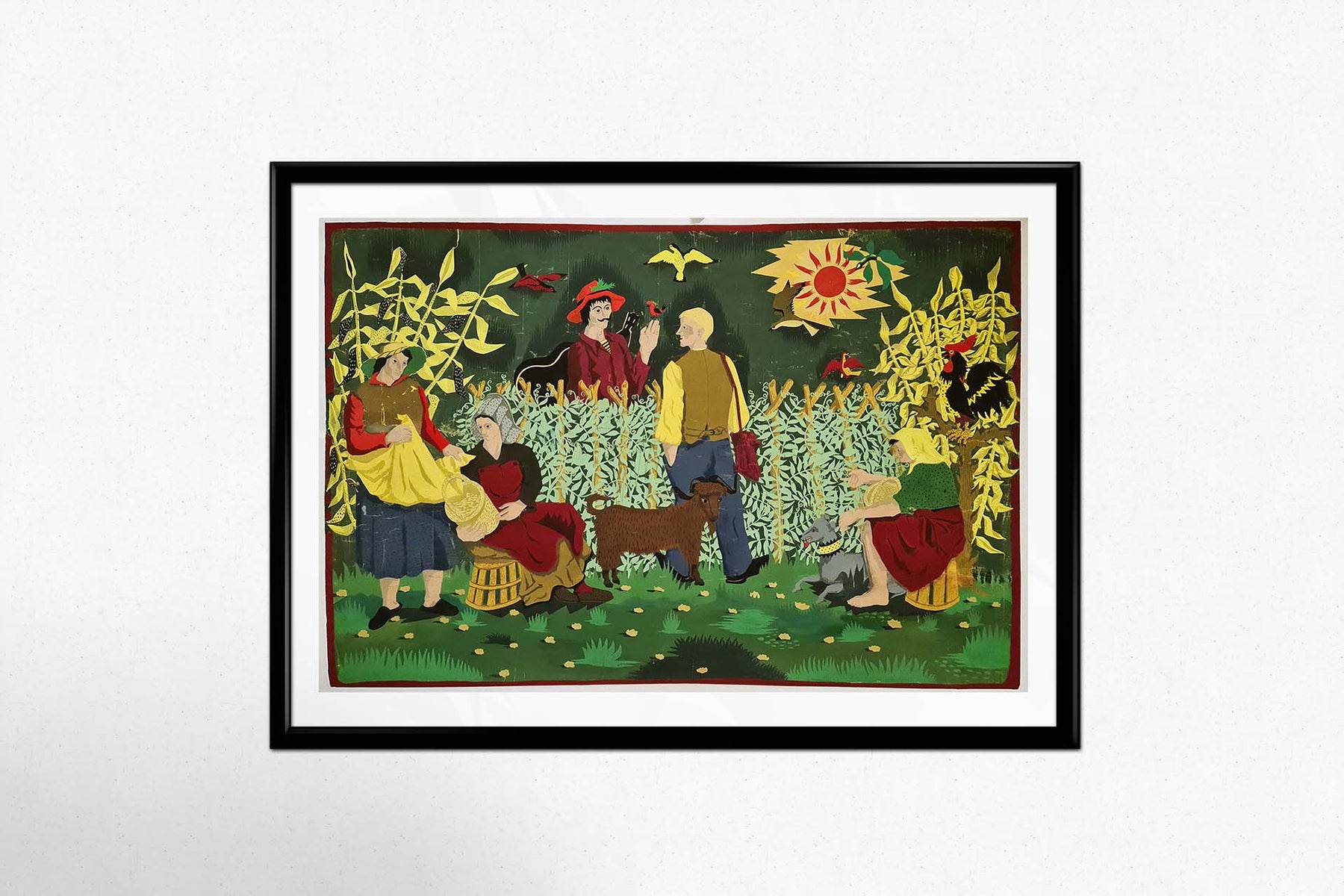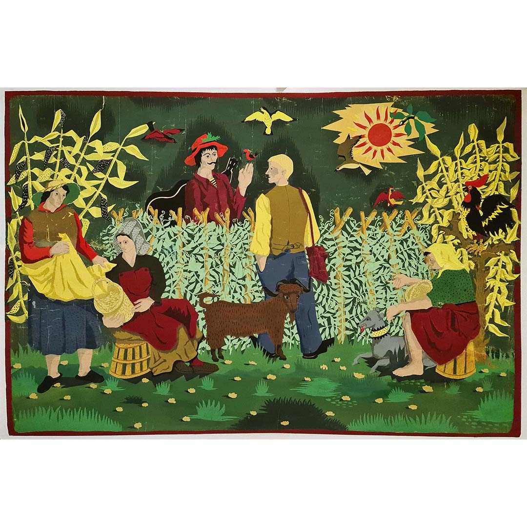 Magnifique gouache des années 50 représentant une scène agricole. Il s'agit d'un projet de tapisserie de Guignebert.