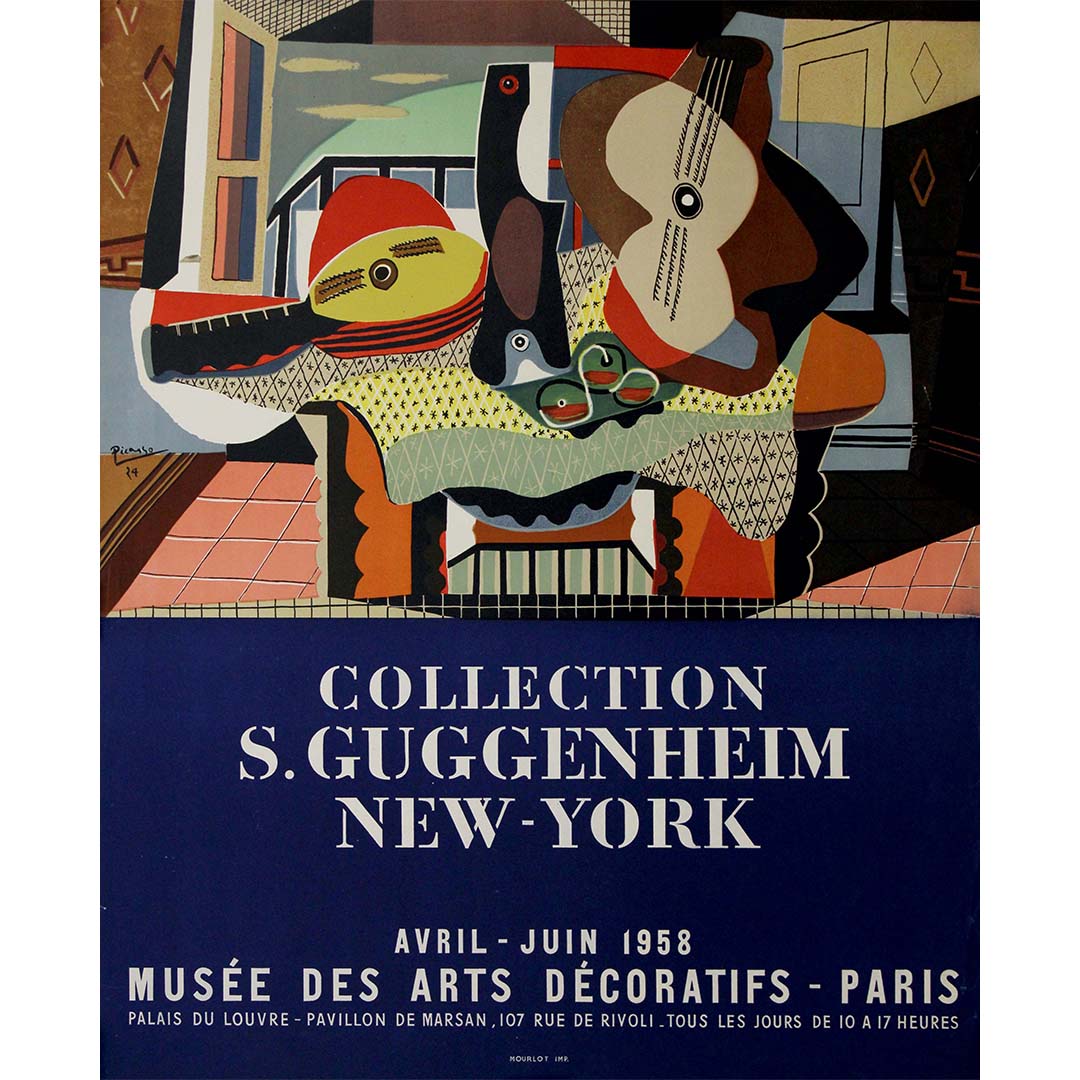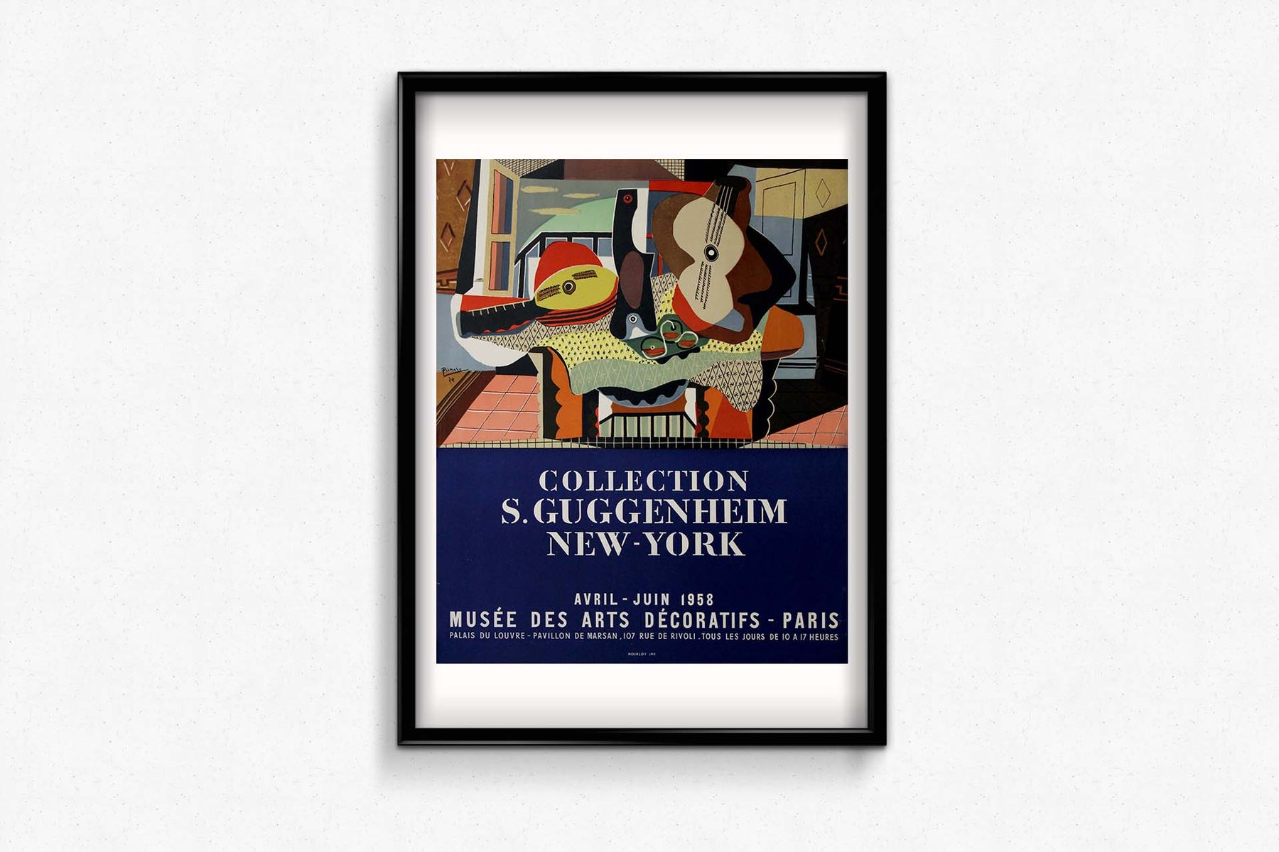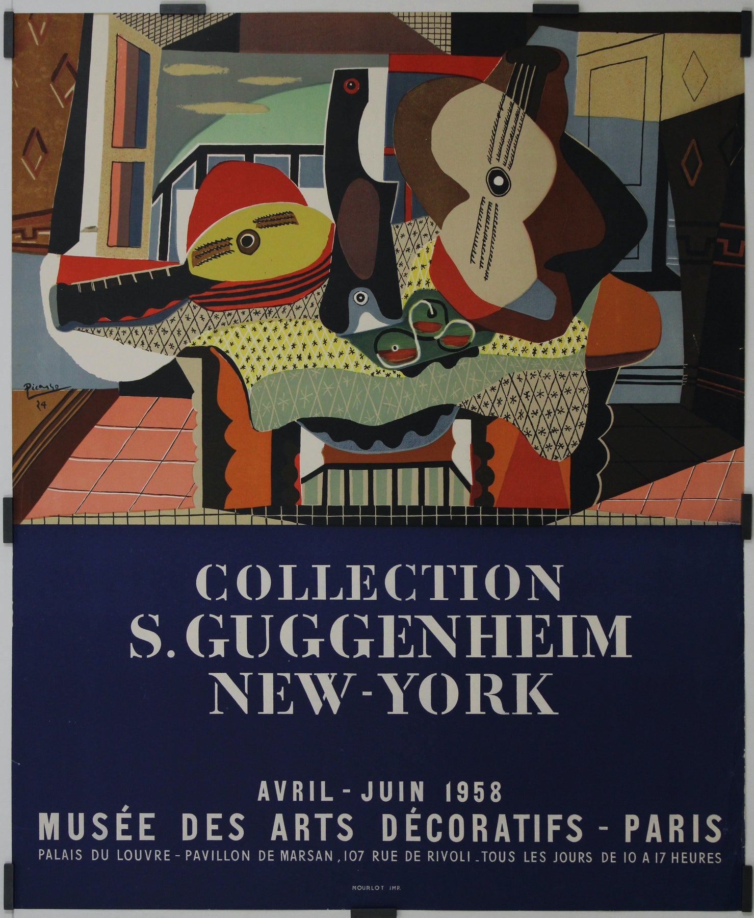 L'affiche originale de l'exposition de 1958 de Pablo Picasso pour la Collection S. Guggenheim New York au Musée des arts décoratifs est un témoignage captivant de la carrière prolifique de l'artiste et de son influence durable sur le monde de l'art moderne.