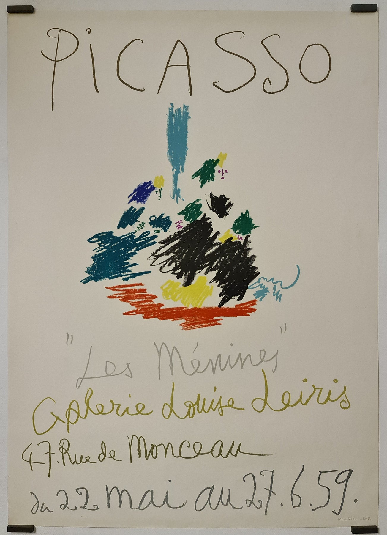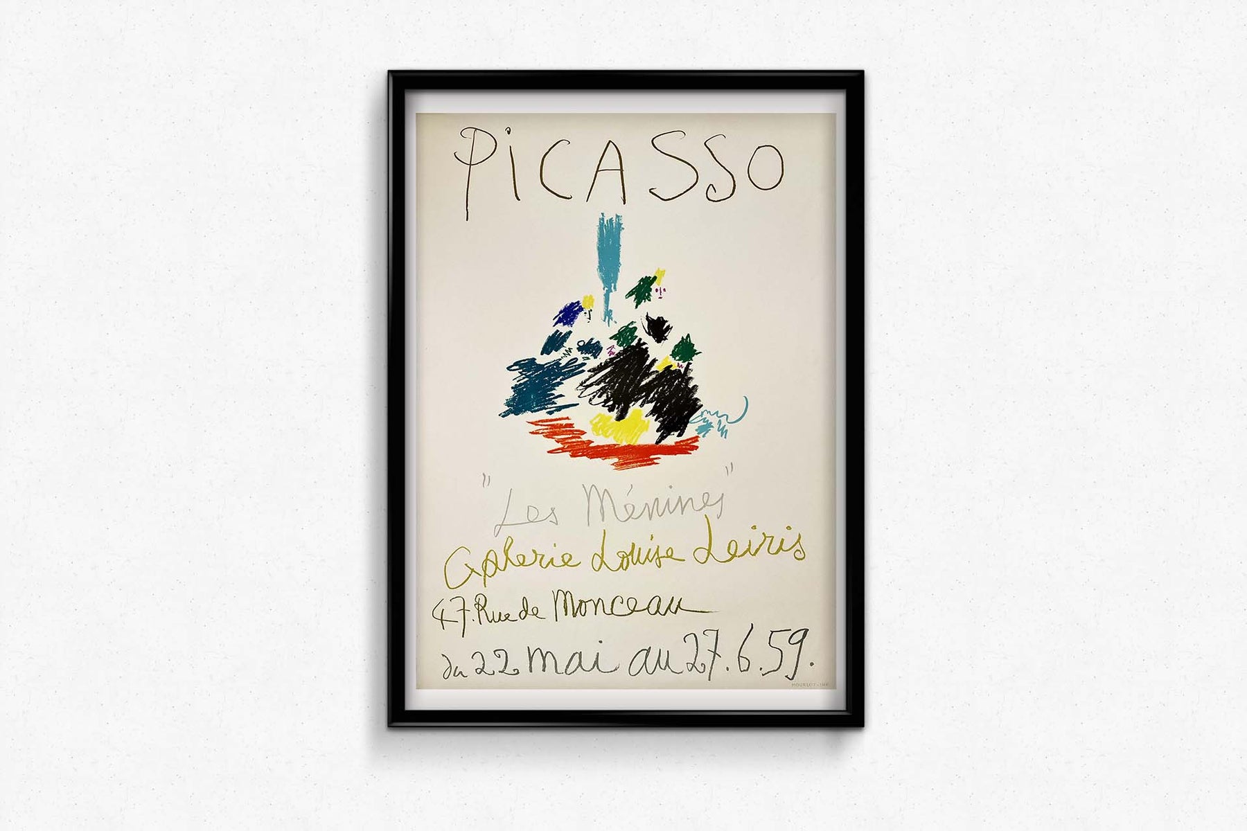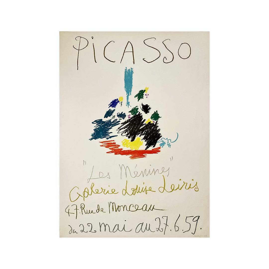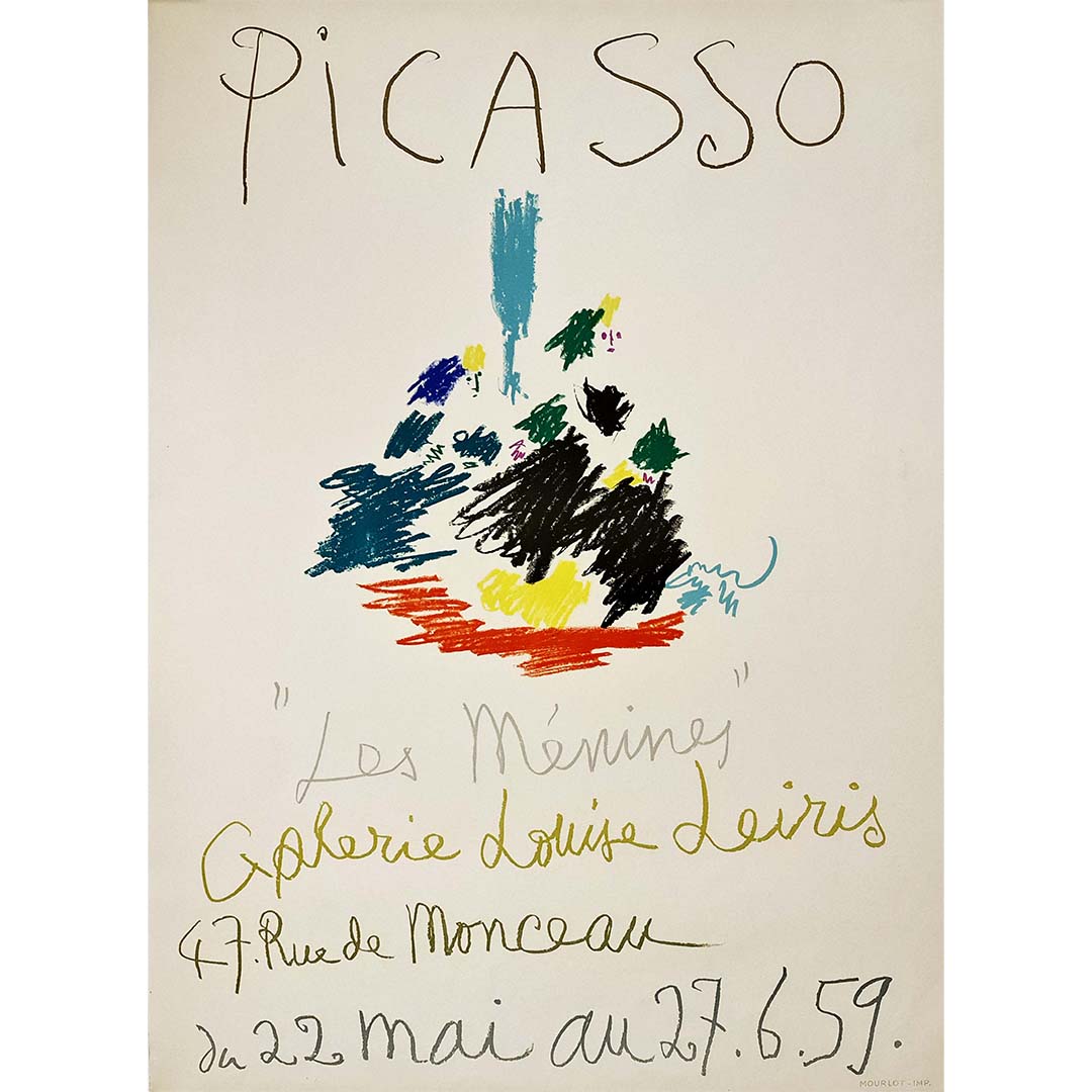 L'affiche de l'exposition de Picasso « Les Ménines » à la Galerie Louise Leiris en 1959, imprimée par Mourlot, est une œuvre remarquable qui témoigne du génie artistique de Picasso et de son exploration audacieuse de l'art classique.
