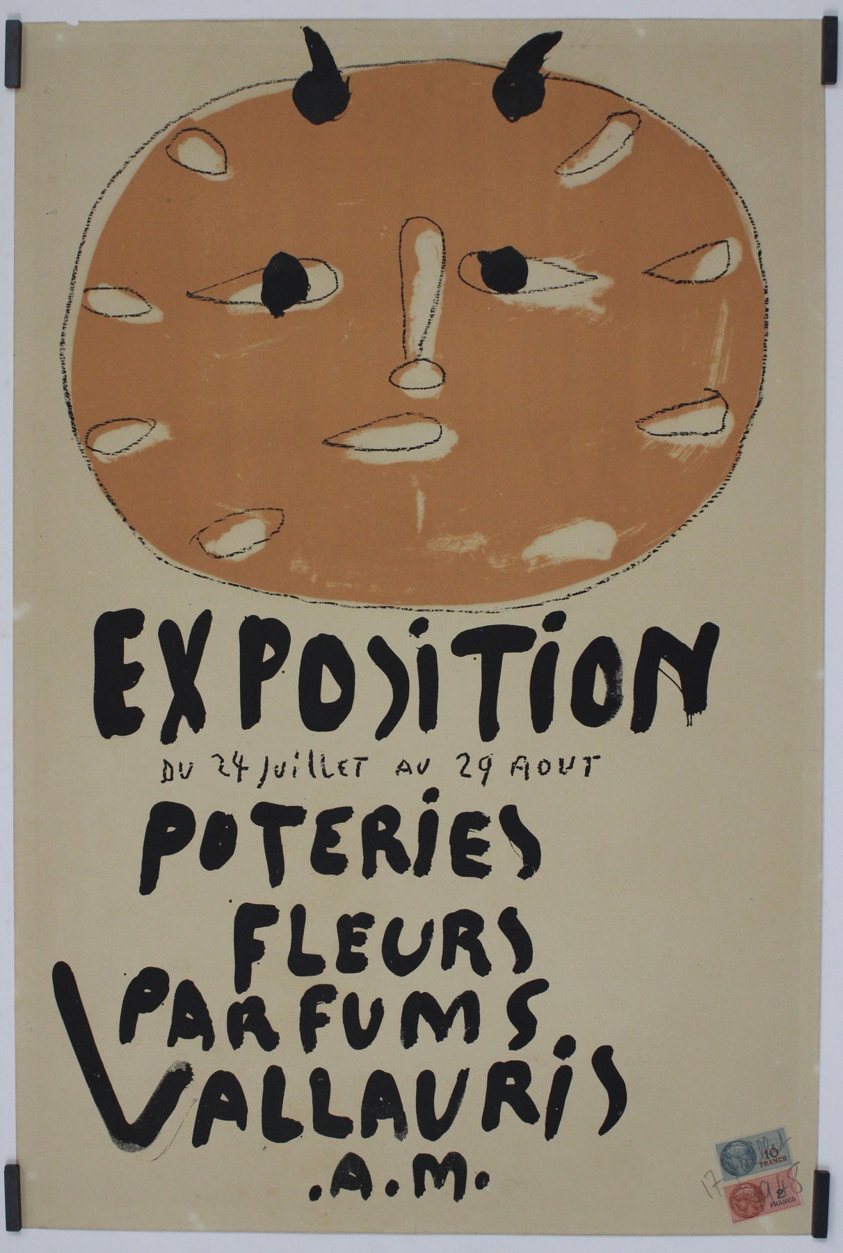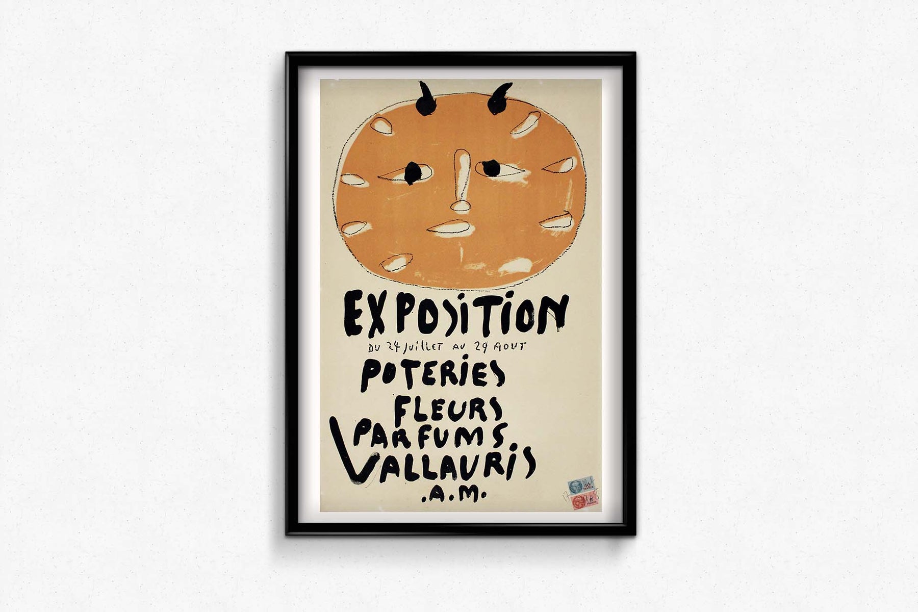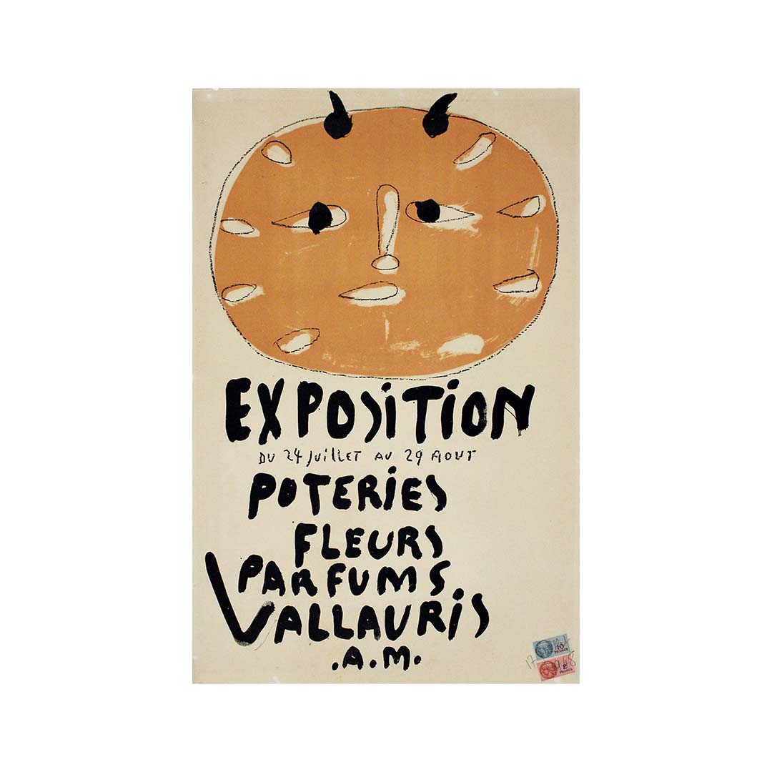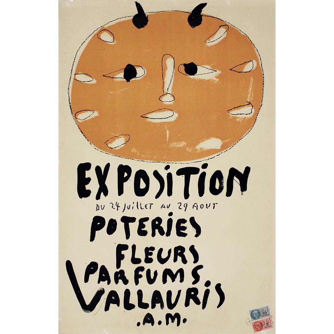 L'affiche originale de l'exposition de Pablo Picasso de 1948, intitulée « Exposition Poteries Fleurs Parfums Vallauris AM », témoigne avec brio de la diversité de son œuvre. Présentée à Vallauris, en France, l'exposition mettait en lumière des céramiques, des fleurs et des parfums créés par Picasso lui-même. L'affiche, conçue par l'artiste, reflète son style si particulier et son audace dans l'utilisation des formes et des couleurs. Par des éléments graphiques à la fois simples et expressifs, elle incarne l'essence même de l'art de Picasso. Cette exposition a marqué un tournant dans sa carrière, révélant son talent polyvalent et sa volonté de repousser les limites artistiques. L'affiche témoigne de l'influence durable de Picasso sur le monde de l'art et rappelle l'importance de Vallauris dans son parcours créatif.