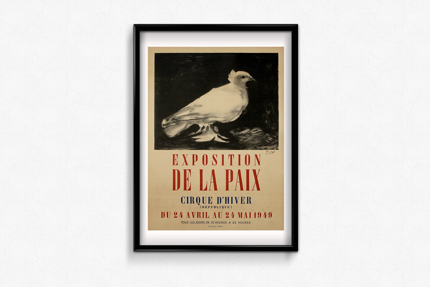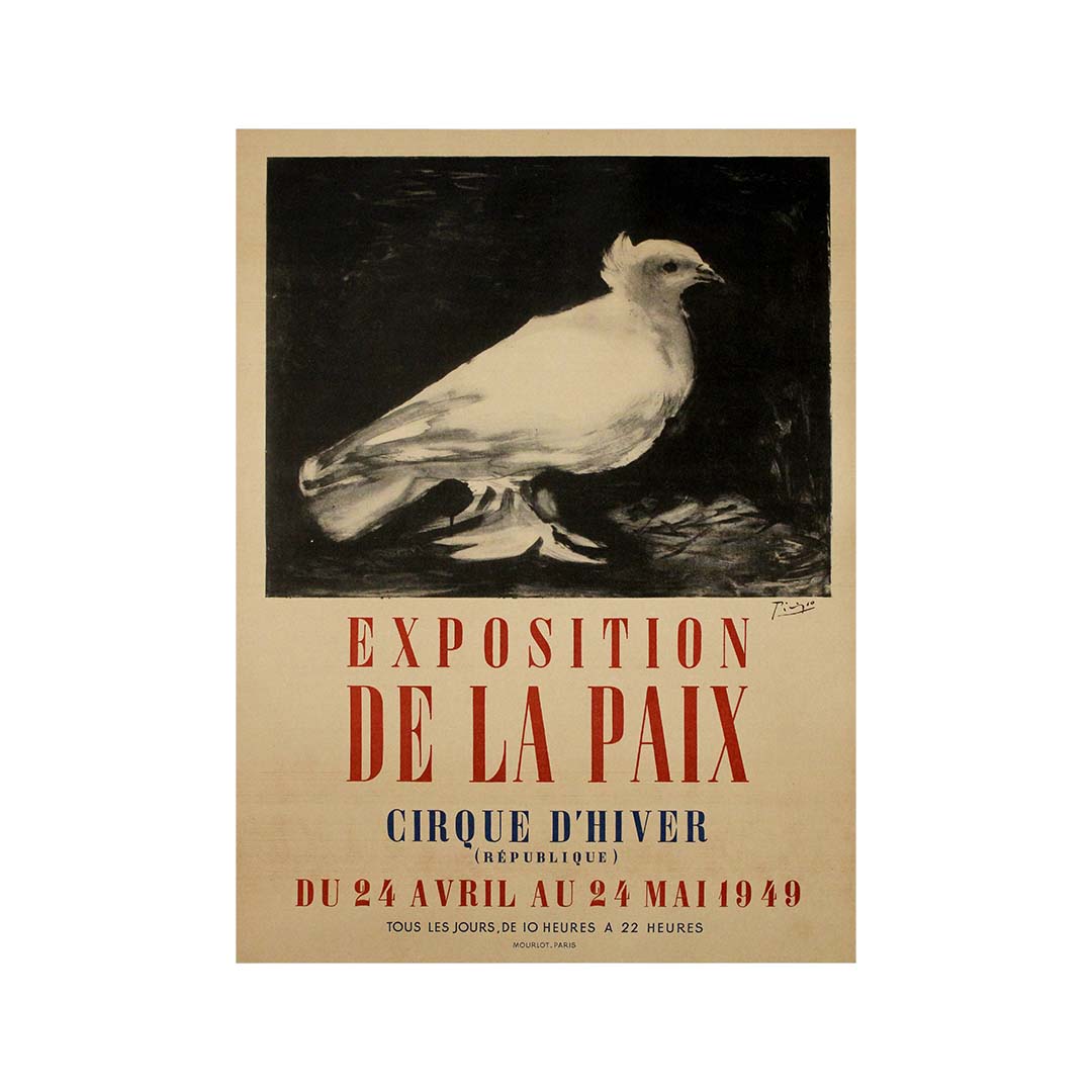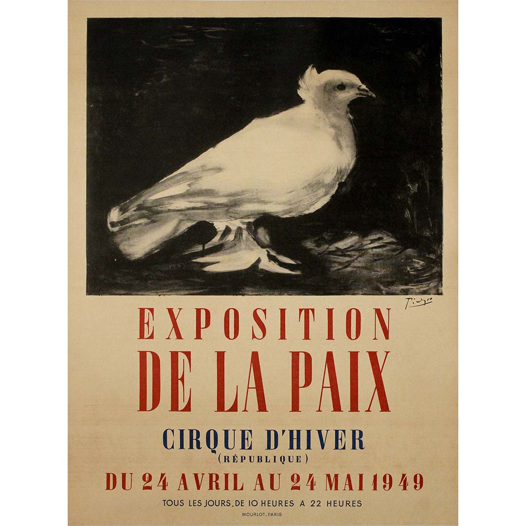 L'affiche a été imprimée par les célèbres ateliers Mourlot à Paris, réputés pour leurs collaborations avec certains des plus grands artistes modernes, dont Matisse et Chagall. Le savoir-faire de Mourlot en matière de lithographie a permis de préserver la finesse des lignes et la subtilité des textures du dessin de Picasso, conférant à l'affiche une qualité intemporelle. L'exposition s'est tenue au Cirque d'Hiver à Paris, un lieu historique qui offrait un cadre grandiose et vibrant à ce message de paix.