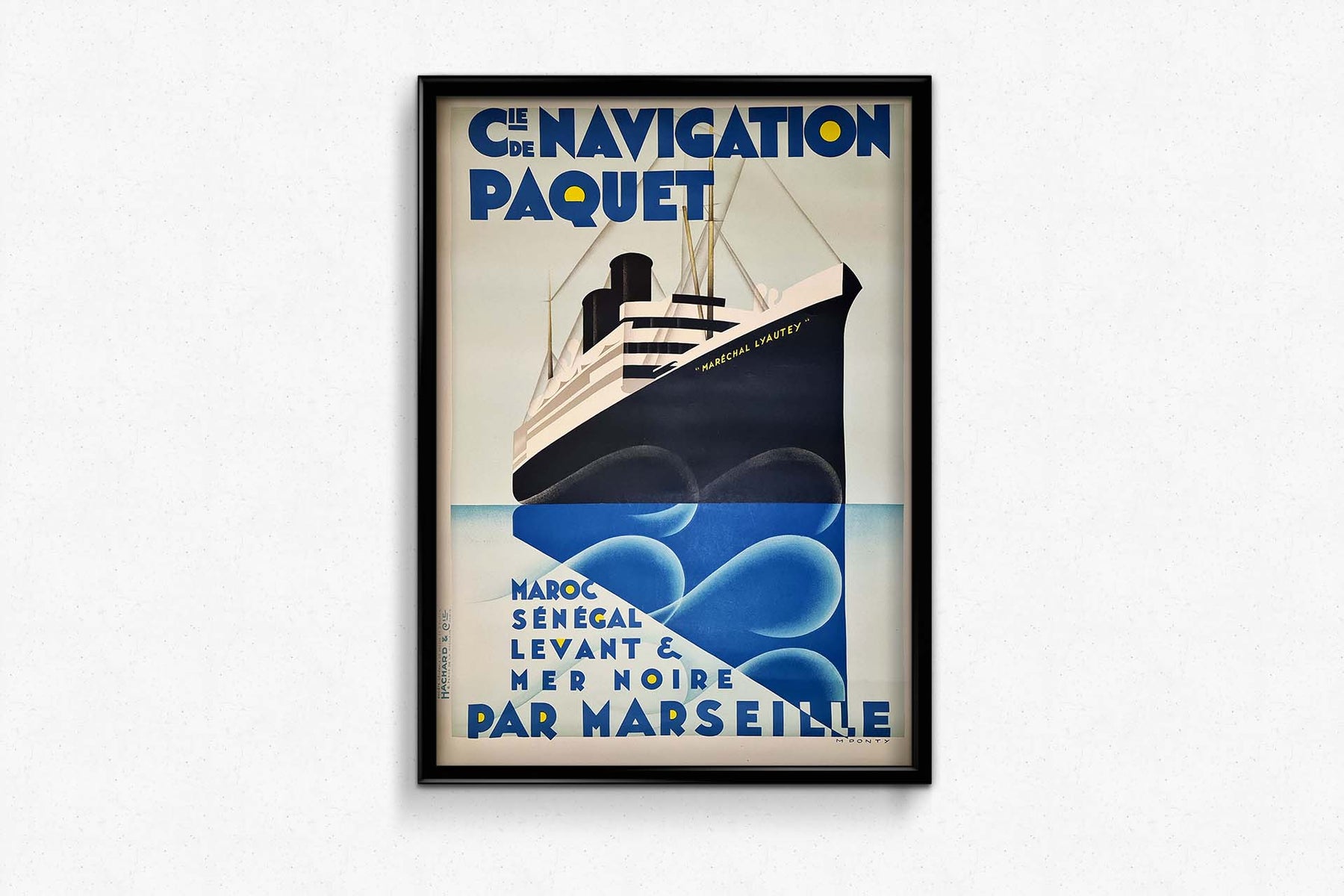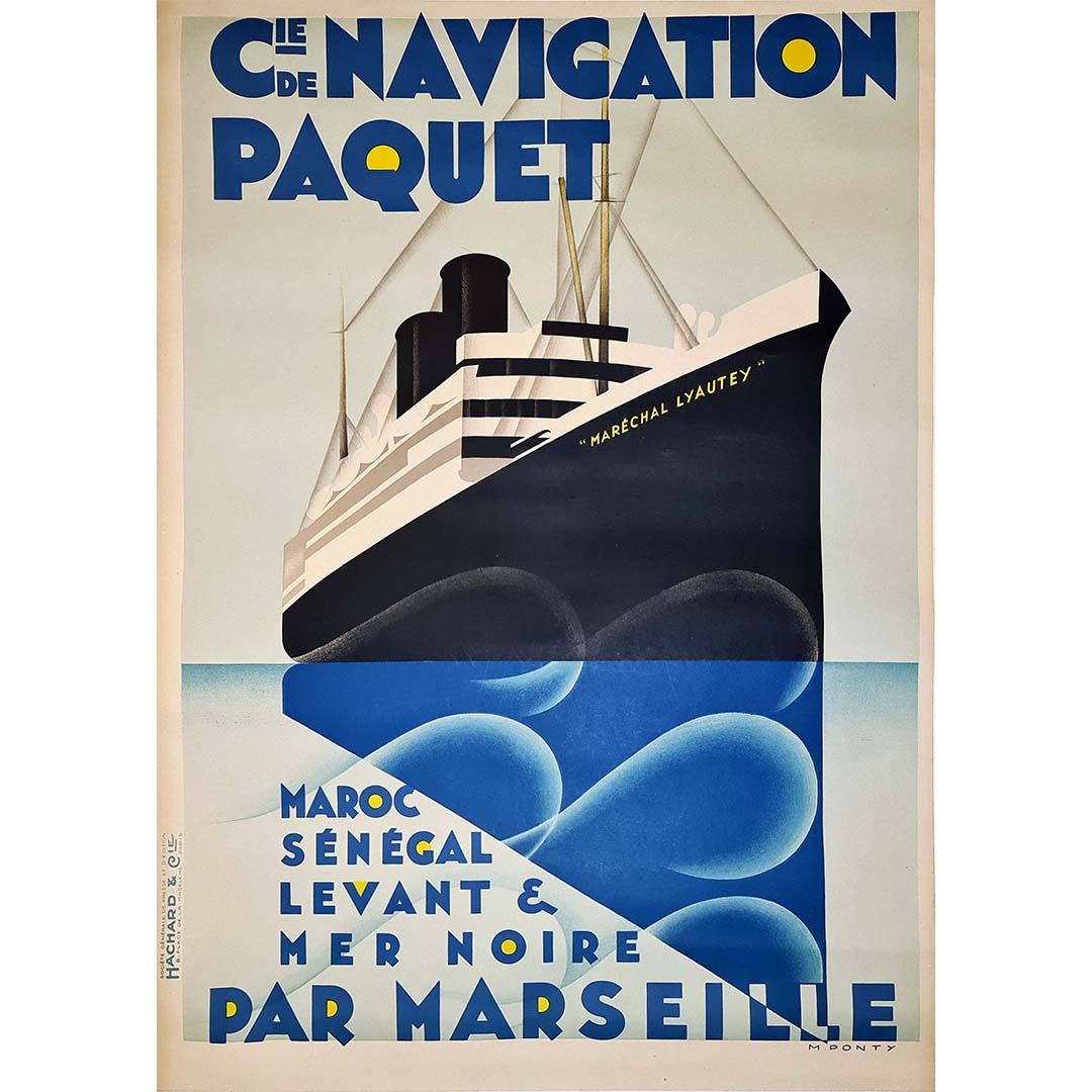 Prix régulier Dans les années 1930, décennie d'effervescence artistique, l'art de l'affiche atteint des sommets, et Ponty s'impose comme un artiste de renom. Parmi ses créations emblématiques figure l'affiche originale de la Compagnie de Navigation Paquet, mettant en scène le paquebot Maréchal Lyautey et proposant des voyages alléchants au Maroc, au Sénégal, au Levant et en Mer Noire, au départ de Marseille.