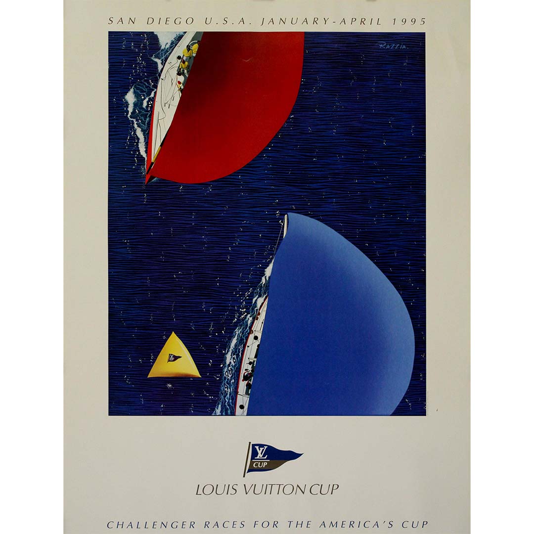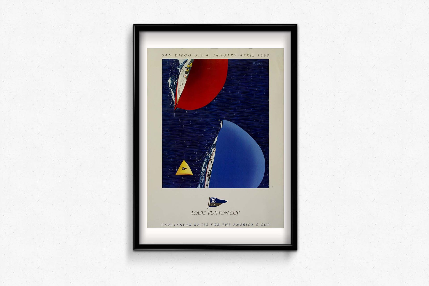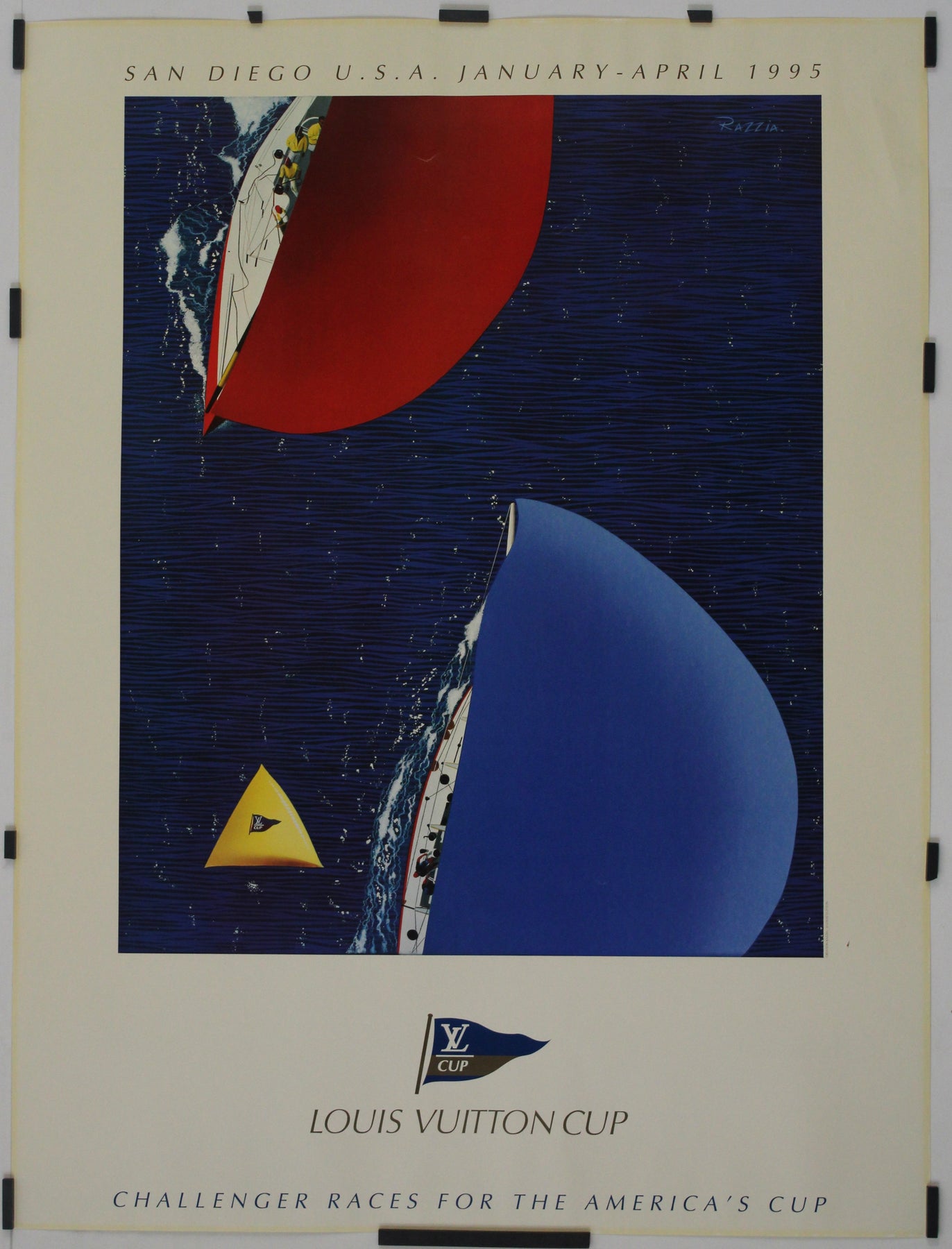 L'affiche originale de 1995 , « Coupe Louis Vuitton : Courses des challengers pour la Coupe de l'America, San Diego » , créée par le célèbre artiste français Razzia (Gérard Courbouleix Dénériaz), capture l'essence même de la compétition de voile lors de l'une des régates les plus prestigieuses au monde. Commandée pour la Coupe Louis Vuitton – série de courses déterminant le challenger pour la Coupe de l'America – cette affiche reflète avec éclat l'élégance et l'intensité du yachting international.