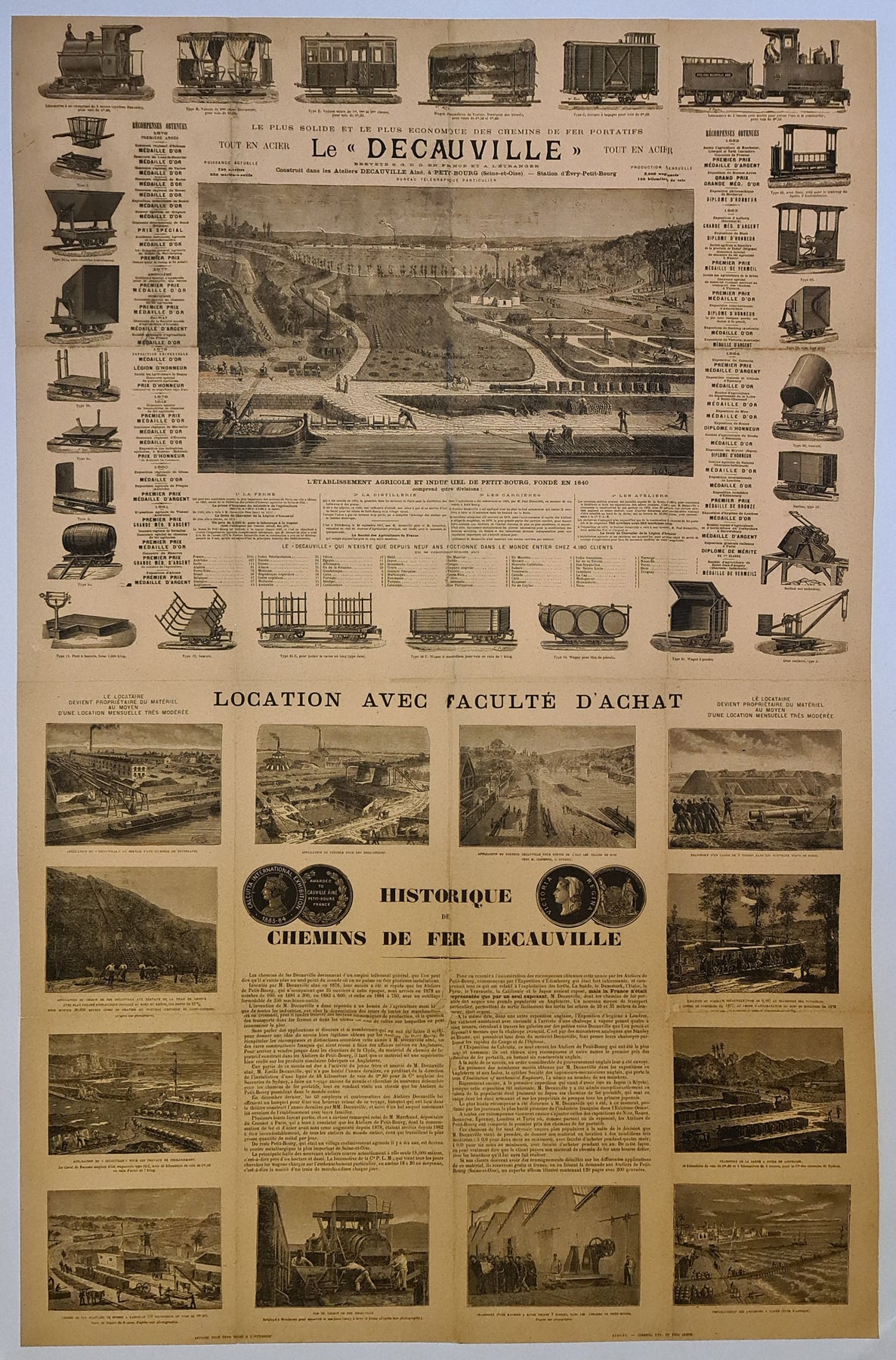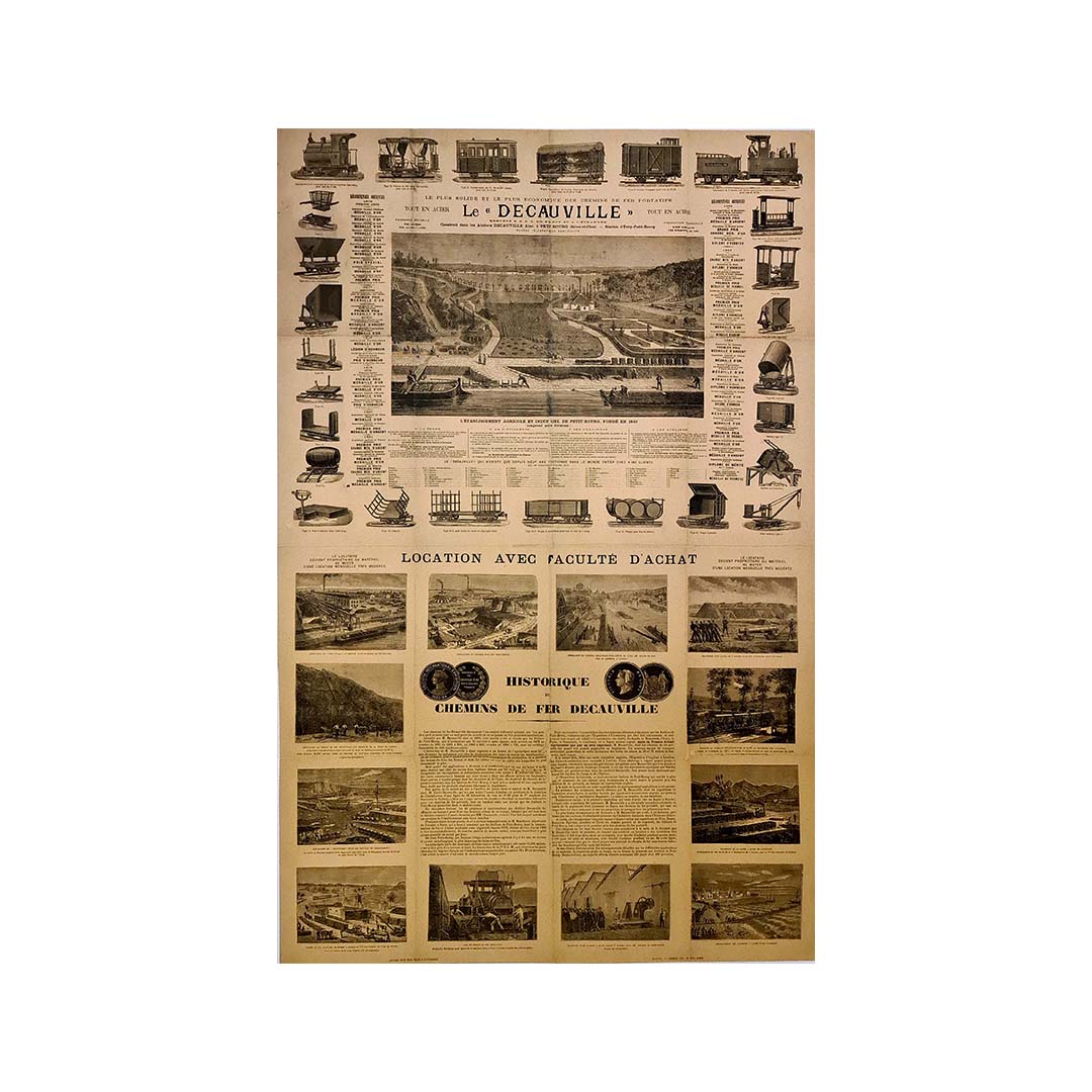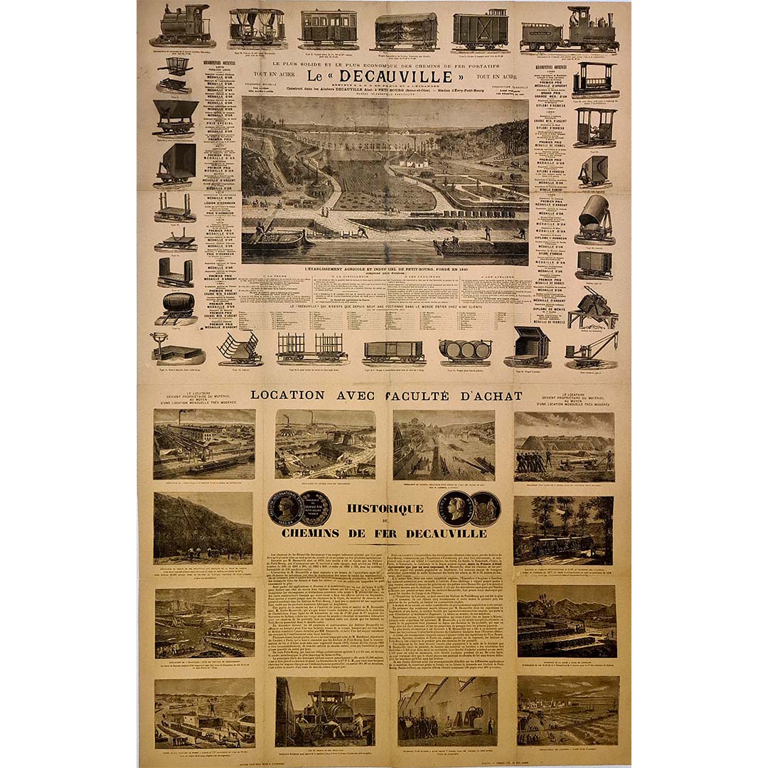 La société Decauville a été fondée par Paul Decauville, fils d'un agriculteur de Courcouronnes (Essonne) spécialisé dans la production de betteraves sucrières et leur distillation en alcool. En 1875, il invente un nouveau type de voie ferrée à écartement réduit (de 400 à 600 mm) qui prend très vite le nom de « Decauville ».
