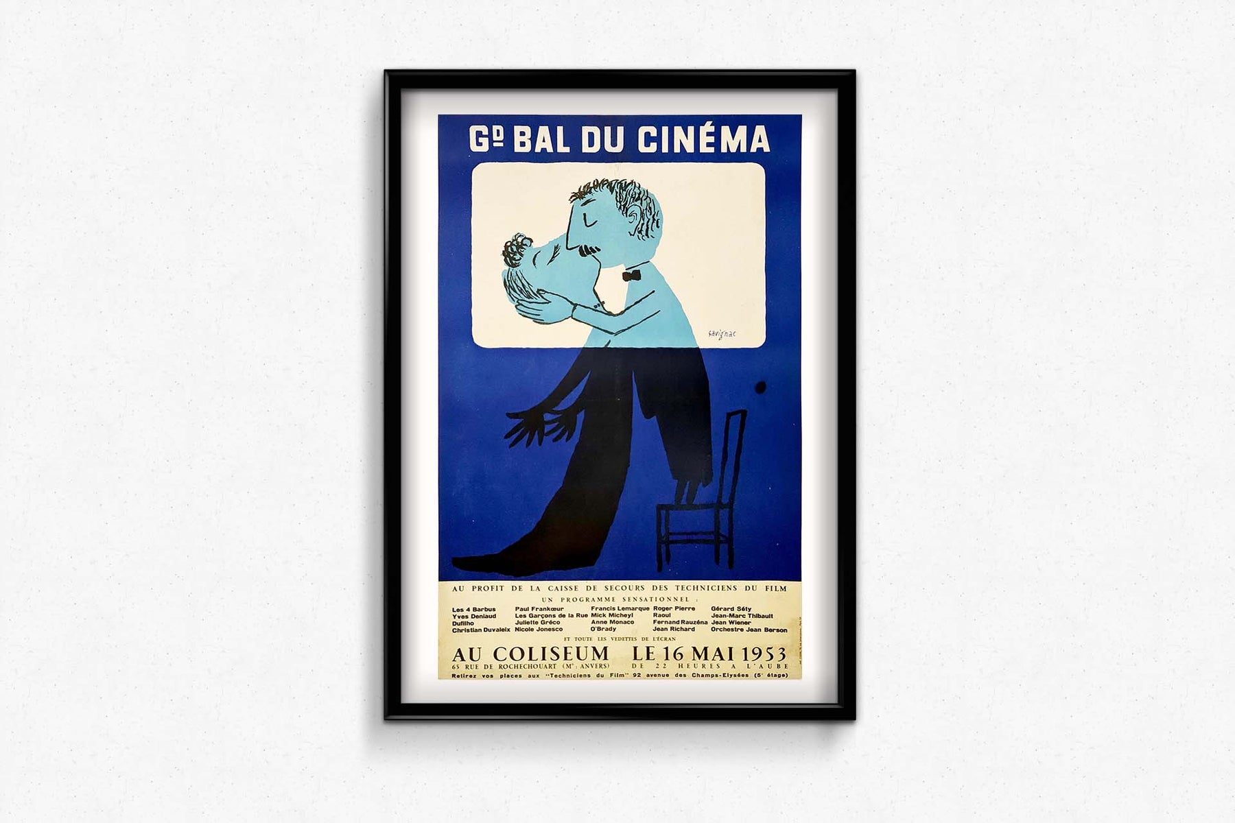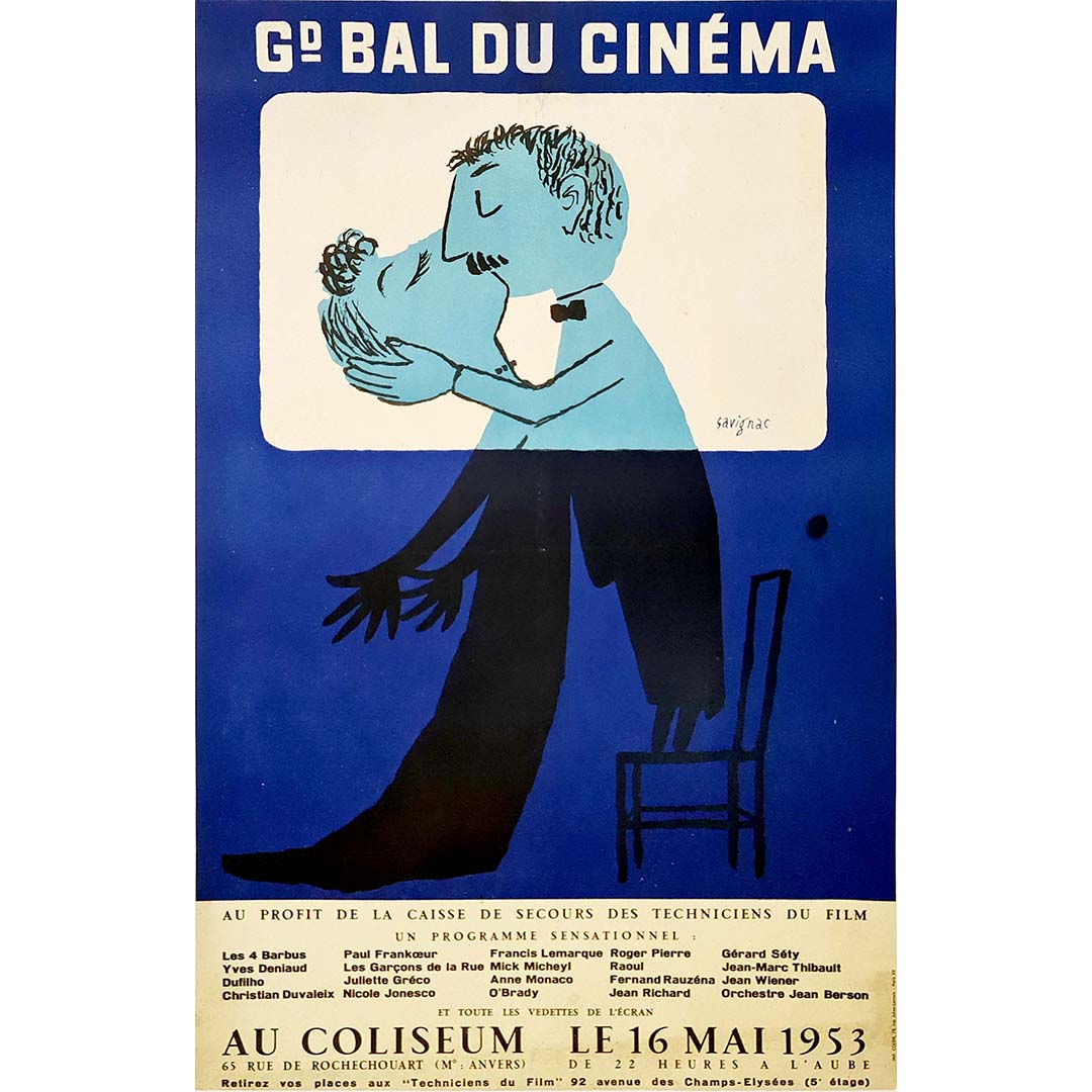 Magnifique affiche du Grand Bal du Cinéma réalisée par Savignac 🇫🇷 (1907-2002), célèbre affichiste français. Nombre de ses créations publicitaires font désormais partie du patrimoine culturel français. Son style se caractérise, comme souvent, par une simplicité efficace, toujours teintée d'humour.