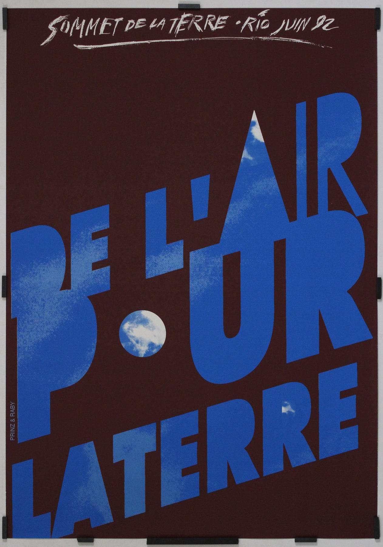 Le travail de Willy Niprinz pour le sommet incarne l'esprit de la défense de l'environnement, soulignant l'importance de la pureté de l'air, du développement durable et de la responsabilité planétaire. L'audace typographique et l'interaction entre le texte et les éléments naturels reflètent les thèmes centraux du sommet : la protection de l'atmosphère terrestre et la garantie d'un avenir viable.
