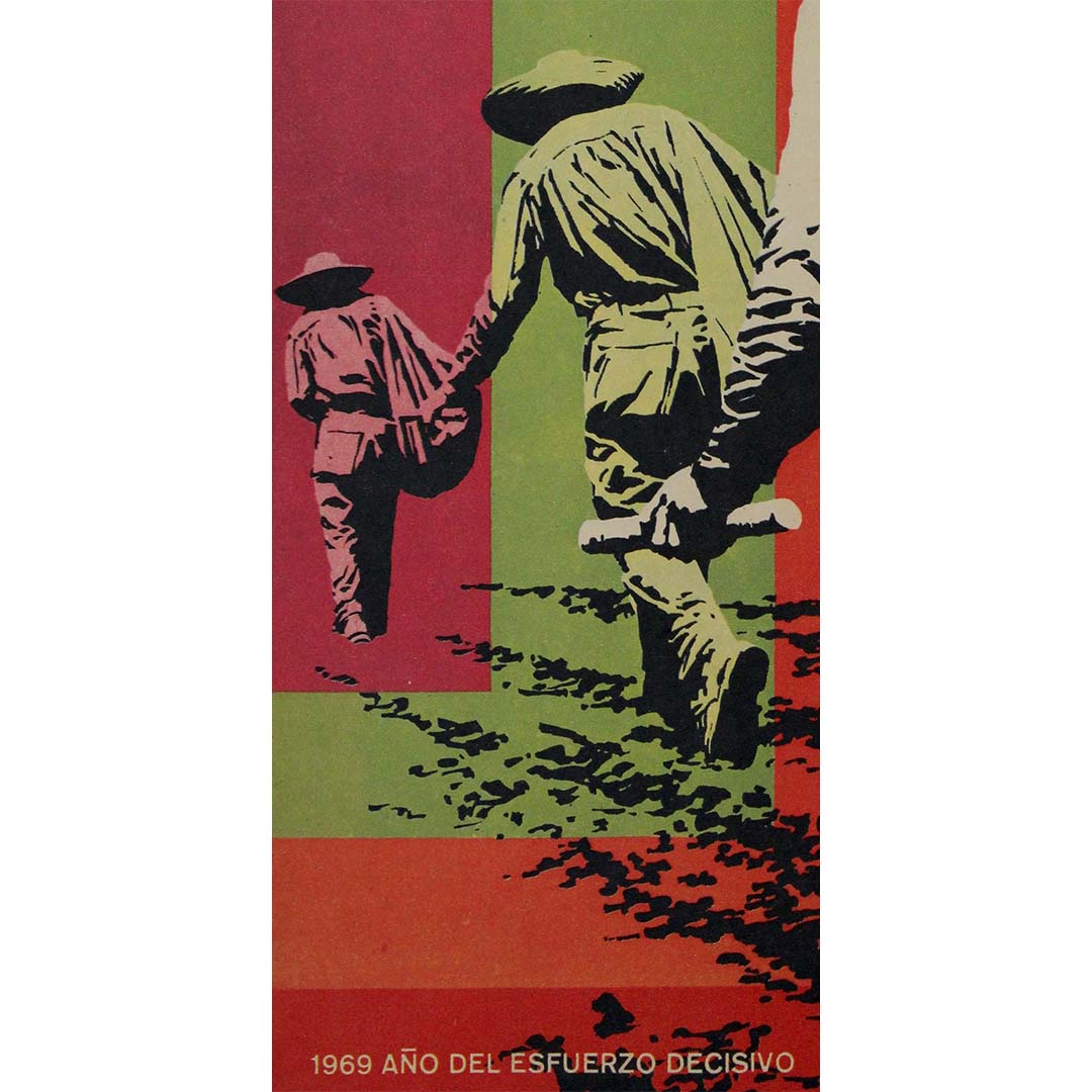 L'année 1969 est marquée par l'« Année de l'effort décisif », un slogan faisant probablement référence à la poursuite des réformes agraires et à la volonté de moderniser la vie et la production rurales durant cette période. L'affiche a été conçue à une époque où la réforme agraire et l'émancipation des paysans étaient des thèmes majeurs du paysage socio-politique latino-américain. Dans plusieurs pays, cette période a été associée à d'importantes transformations visant à améliorer les conditions de vie des travailleurs agricoles, qui représentaient une part importante de la population mais étaient souvent victimes d'exploitation et de pauvreté.