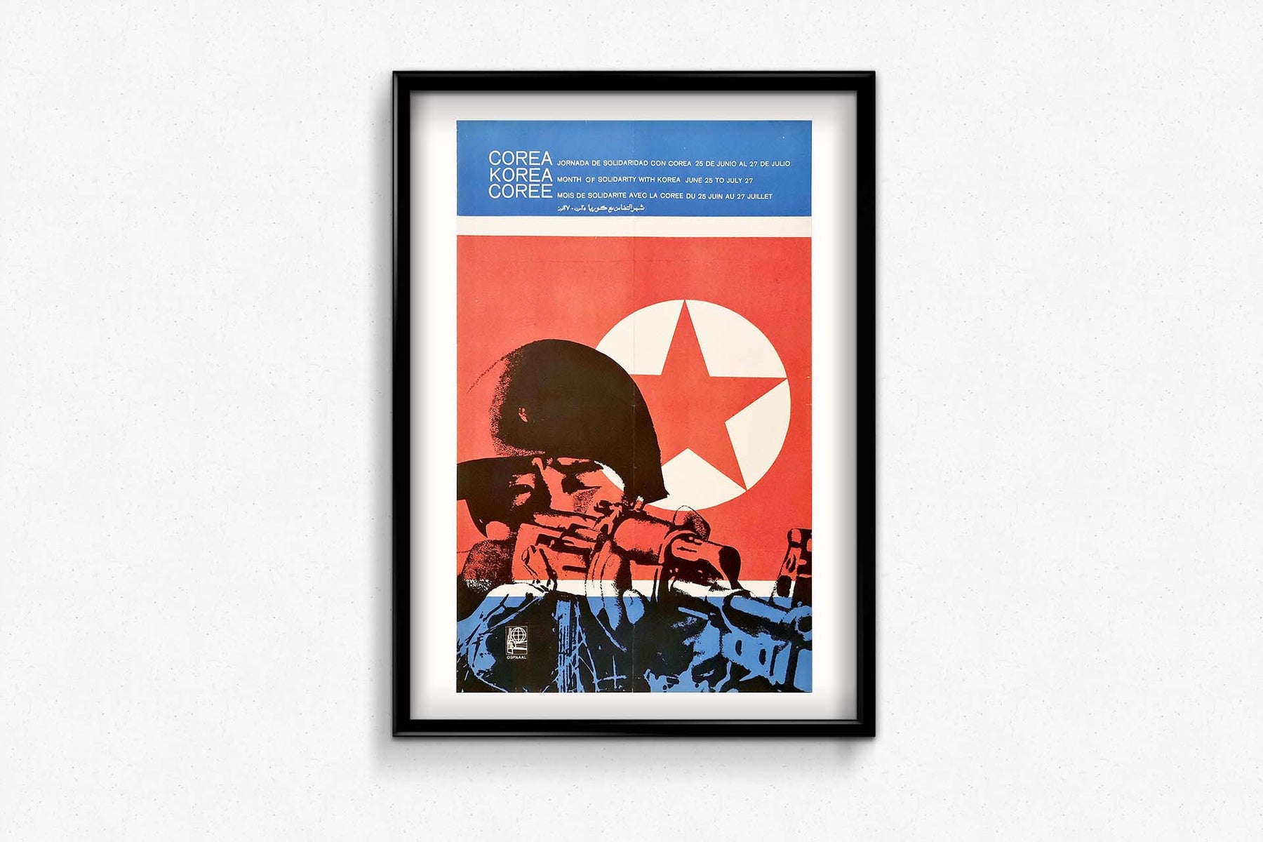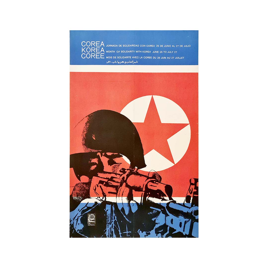 Très belle affiche politique pour le mois de solidarité avec la Corée, du 25 juin au 27 juillet. Ces deux dates marquent le début et la fin de la guerre de Corée (1950-1953).