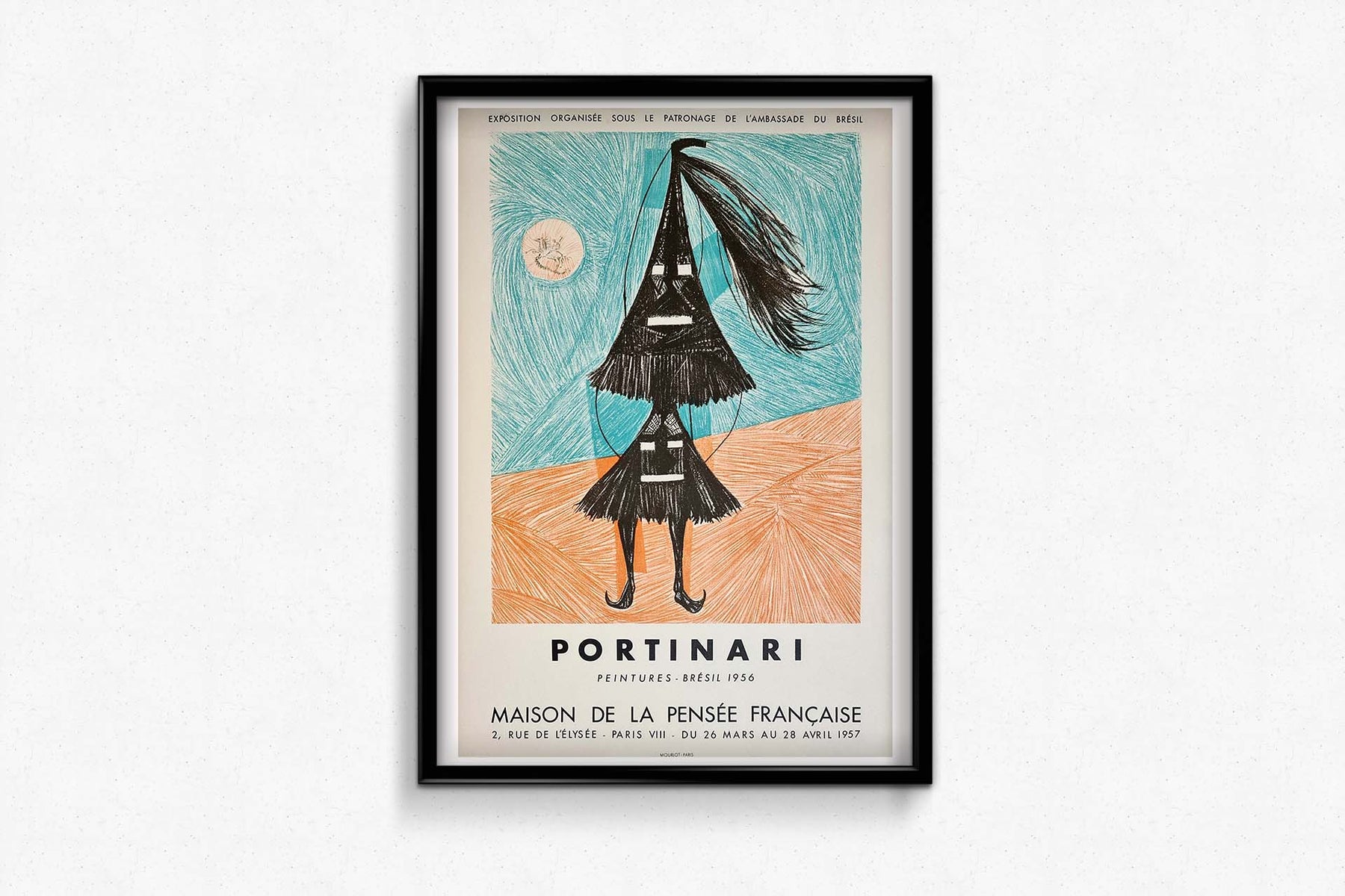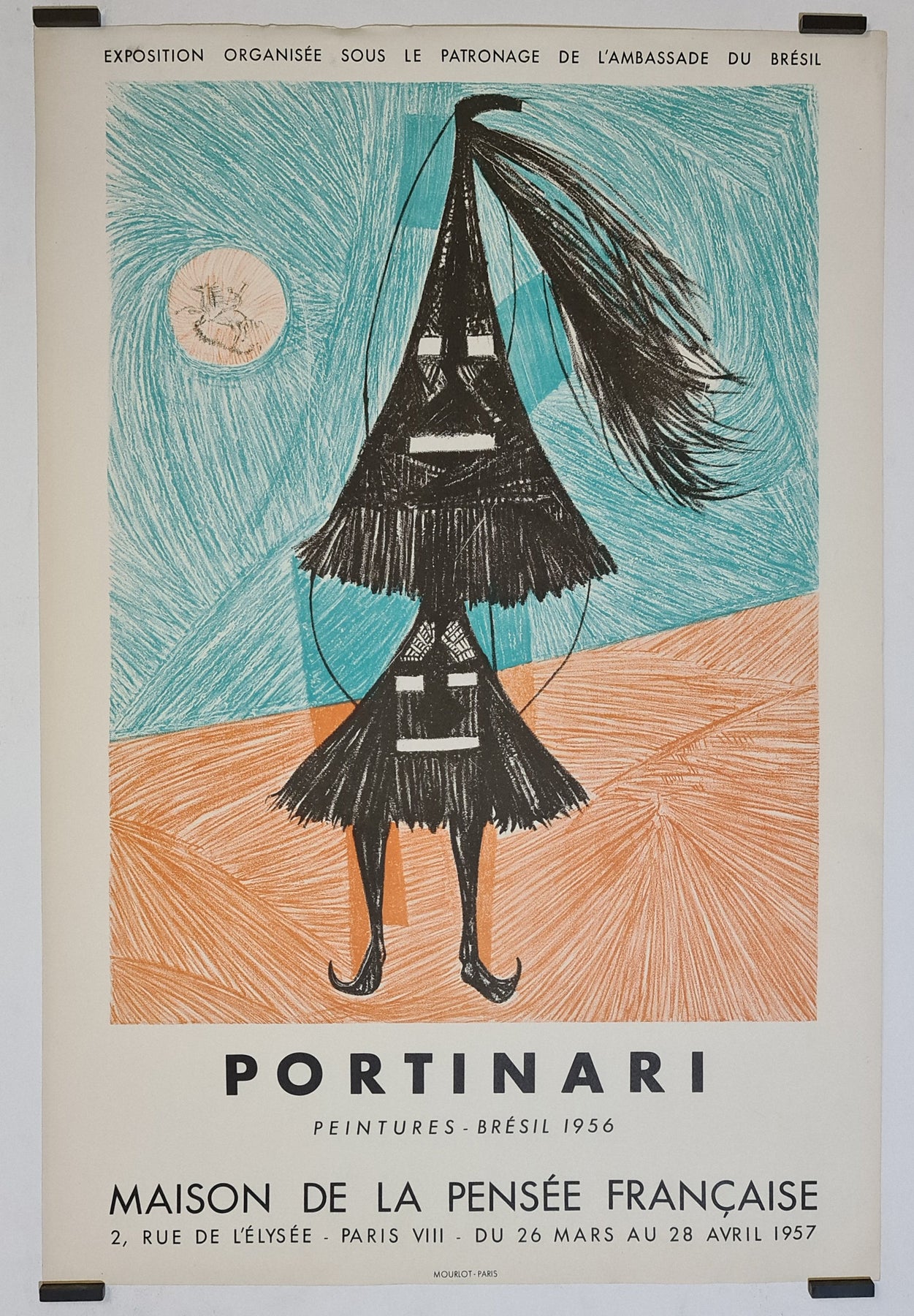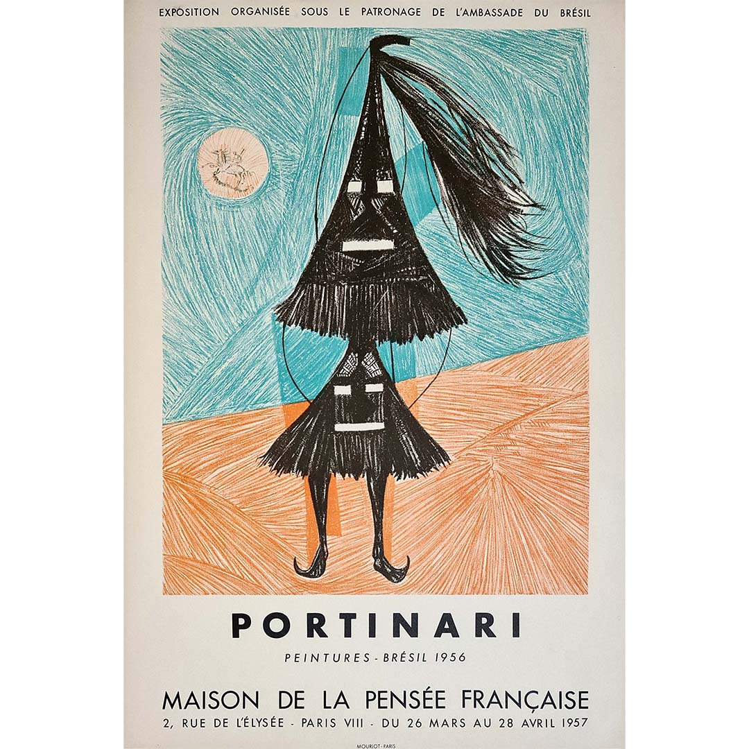 En 1957, la Maison de la Pensée Française présenta avec fierté les peintures vibrantes et évocatrices du célèbre artiste brésilien Candido Portinari. L'exposition, intitulée « Peintures Brésil 1956 », marqua durablement le monde de l'art, et son essence fut magnifiquement retranscrite sur l'affiche originale.