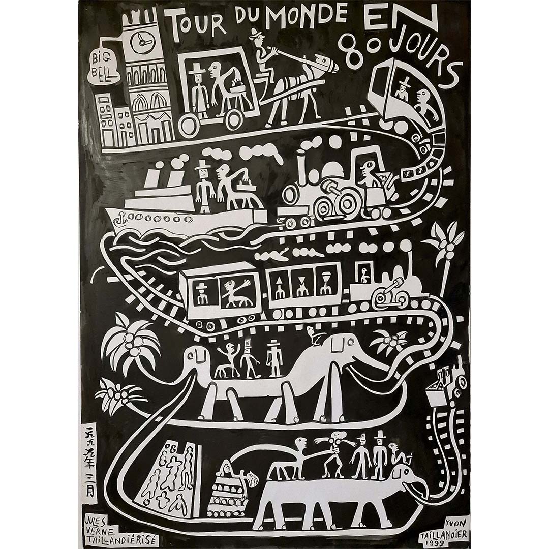 Très belle œuvre originale d'Yvon Taillandier sur sa tournée mondiale en 80 jours.