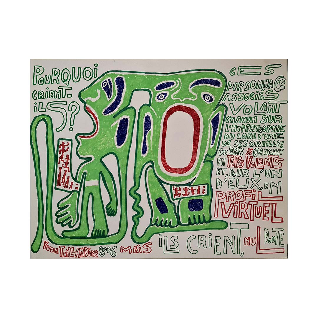 Yvon Taillandier, artiste et écrivain français de renom, est né le 28 mars 1926 à Paris. Reconnu pour ses contributions multiples au monde de l'art, Taillandier a marqué de son empreinte le paysage artistique en tant que peintre, illustrateur et critique d'art. Son style singulier, caractérisé par des couleurs vibrantes et des compositions ludiques, lui confère une place unique dans l'art contemporain.