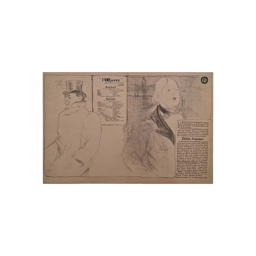 Henri de Toulouse-Lautrec, né en 1864, fut un précurseur de l'affiche et de la lithographie. Il était réputé pour son talent à saisir l'essence de la société de son temps et à la refléter dans son art. L'affiche du programme du Théâtre de l'Œuvre témoigne de ce talent, intégrant des éléments visuels et symboliques qui transcendent les limites de l'affiche traditionnelle.
