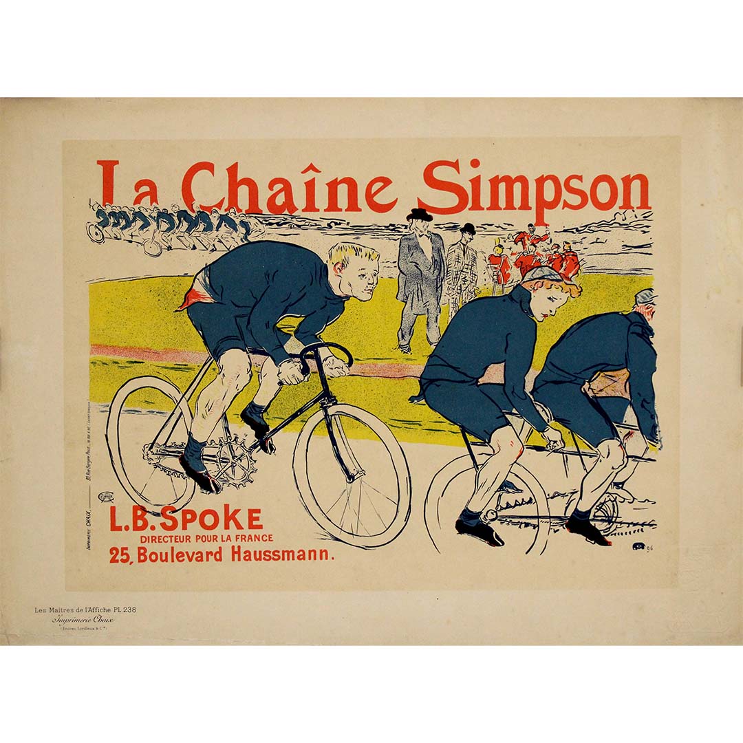 L'affiche figurait dans la prestigieuse série « Les Maîtres de l'Affiche », une collection renommée, conçue par Jules Chéret pour présenter les meilleures affiches de l'époque. En tant que planche 238, cette œuvre illustre la capacité de Toulouse-Lautrec à élever la publicité au rang d'art, capturant à la fois l'énergie de la culture cycliste et l'innovation élégante de la chaîne Simpson – un produit commercialisé pour sa fiabilité et son efficacité mécaniques.
