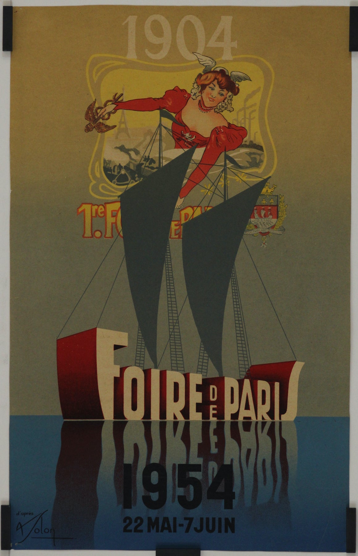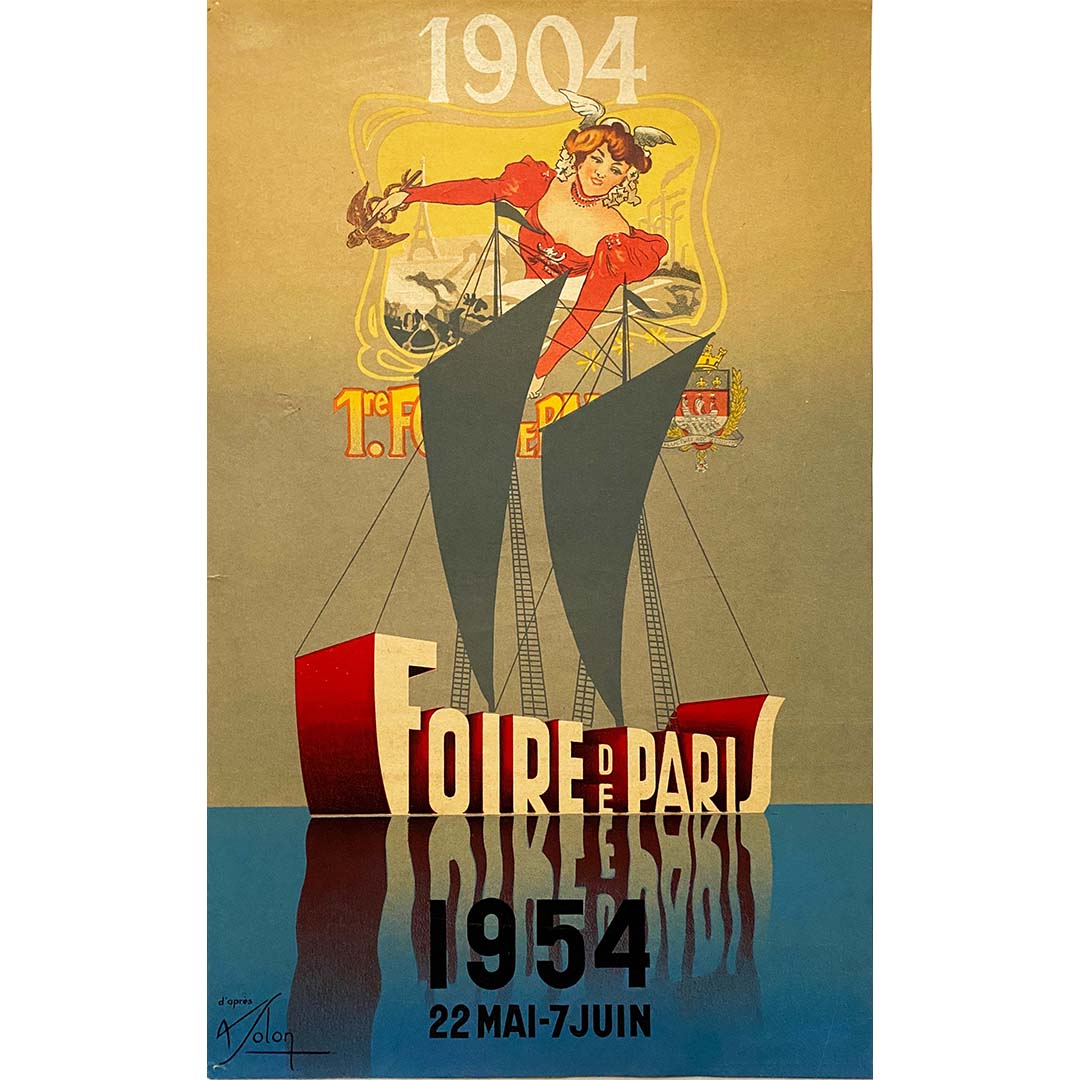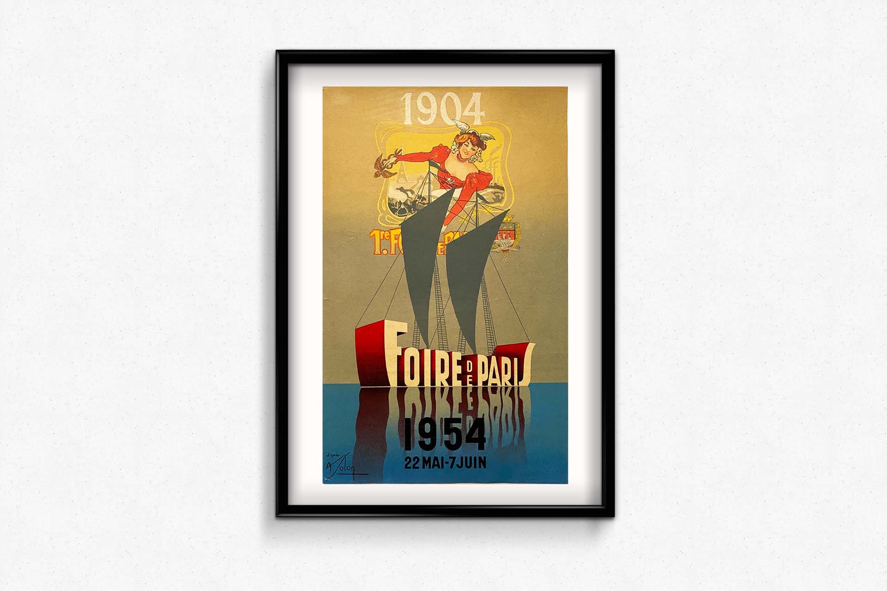 Magnifique affiche d'Albert Solon pour le cinquantième anniversaire de l'Exposition universelle de Paris. L'Exposition universelle de Paris est un événement commercial organisé à Paris depuis 1904. Elle a lieu chaque année fin mai et dure une dizaine de jours. Grâce à une structure organisée en univers (voir la rubrique « Zones d'exposition »), elle propose une offre variée et très complète au grand public.