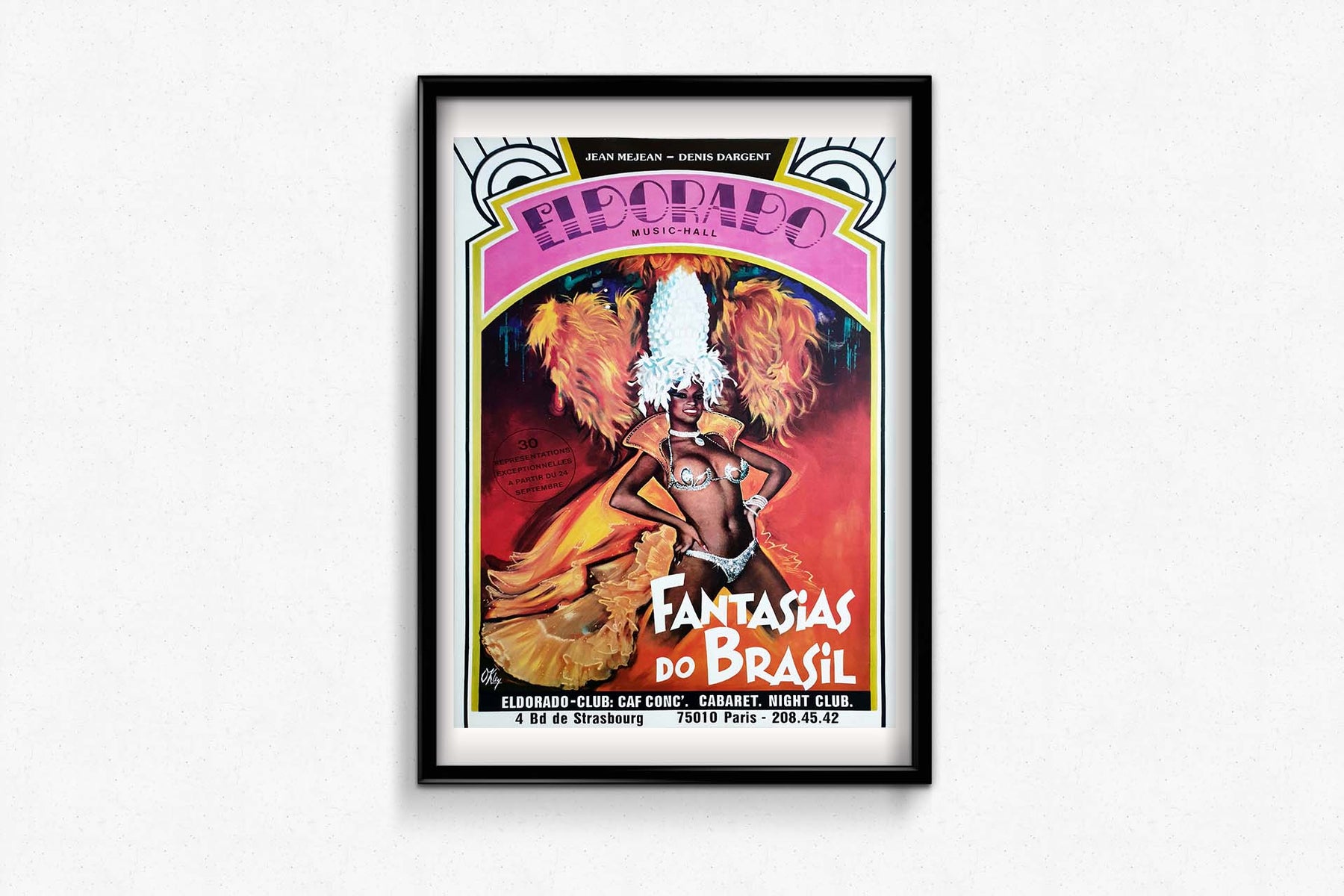 L'affiche originale de « Fantasias do Brasil » à l'Eldorado Music Hall, conçue par Okley, est une œuvre d'art vibrante et visuellement captivante qui capture l'essence de la musique et de la culture brésiliennes. Créée pour promouvoir l'événement, cette affiche sert non seulement de support publicitaire, mais offre également une fenêtre colorée sur l'univers de la musique brésilienne et ses rythmes envoûtants.