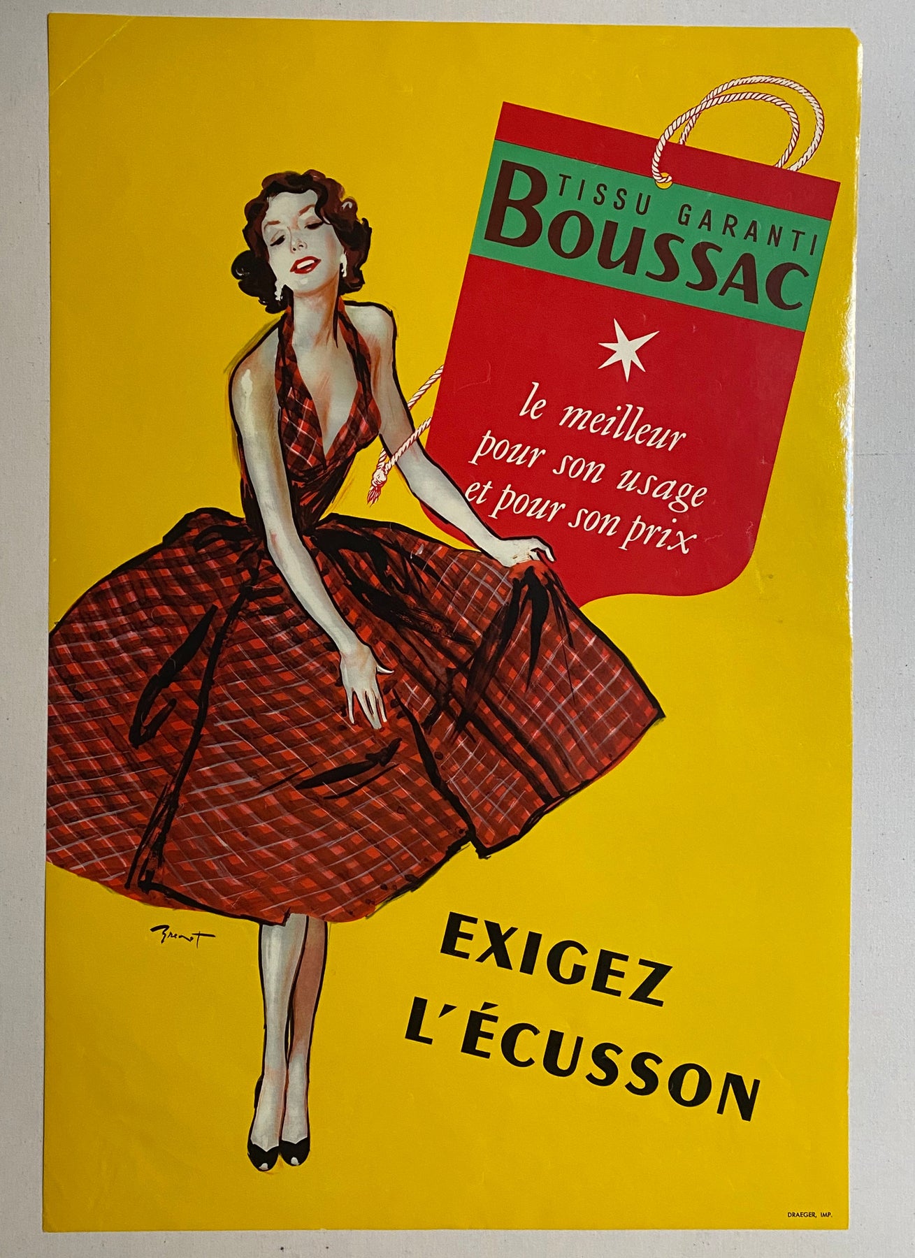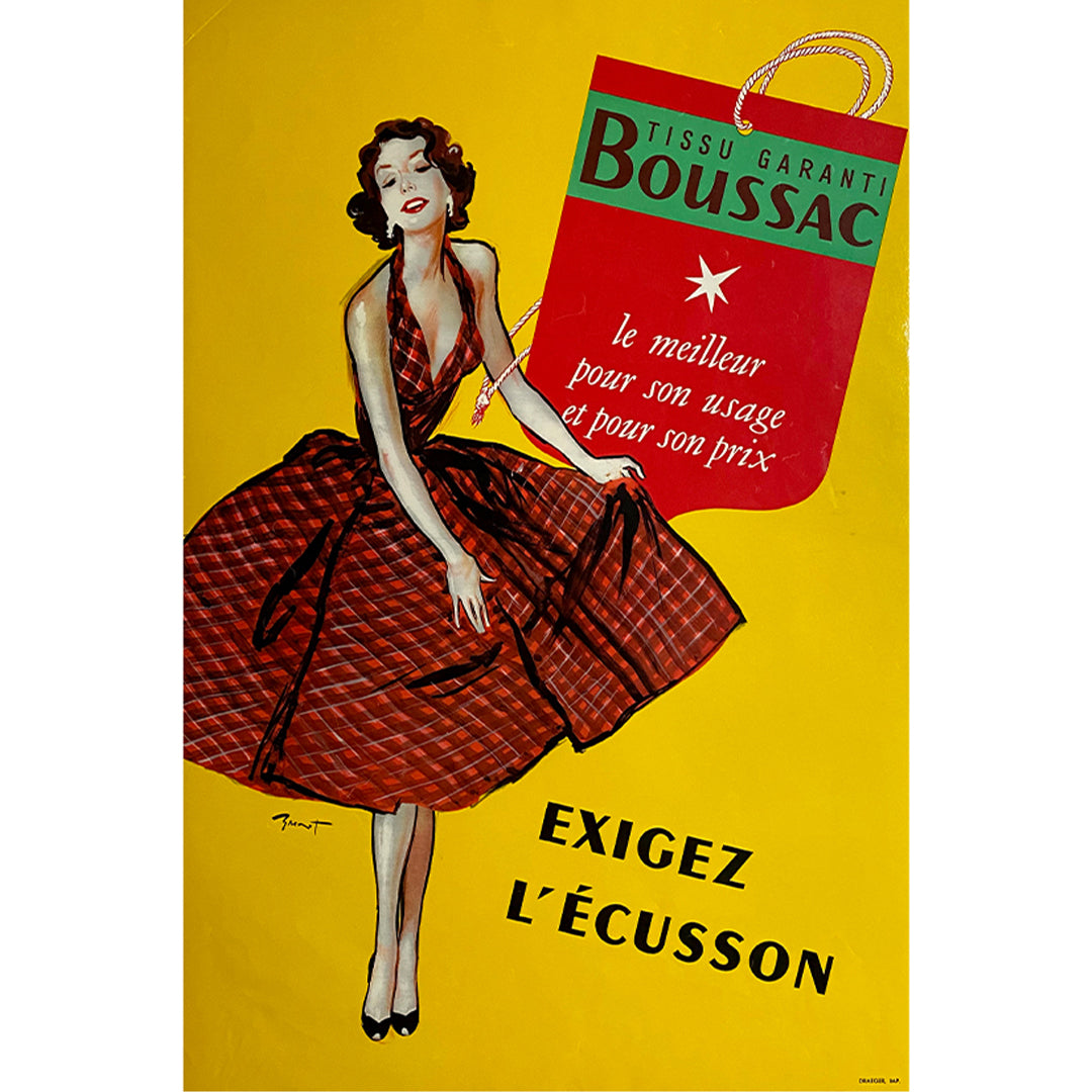 Affiche originale créée en 1953 par Brenot pour promouvoir le célèbre tissu Boussac.