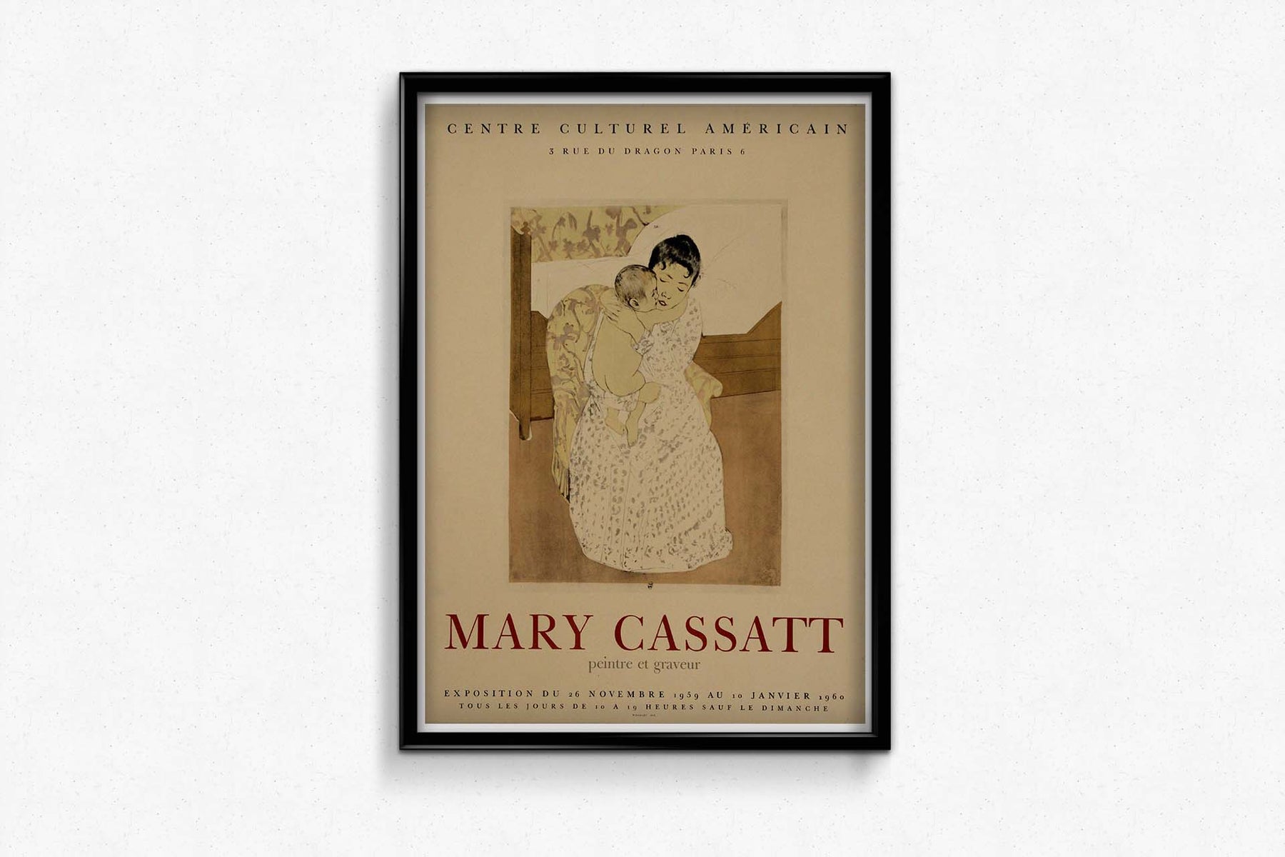Mary Cassatt, peintre et graveuse américaine de renom, est surtout connue pour ses représentations uniques et intimistes de femmes et d'enfants. Figure majeure du mouvement impressionniste, son œuvre se caractérise par la délicatesse de sa touche, son utilisation novatrice de la couleur et son observation attentive du quotidien. Cette affiche témoigne de son héritage artistique et de son rôle de trait d'union entre les cultures artistiques américaine et européenne.