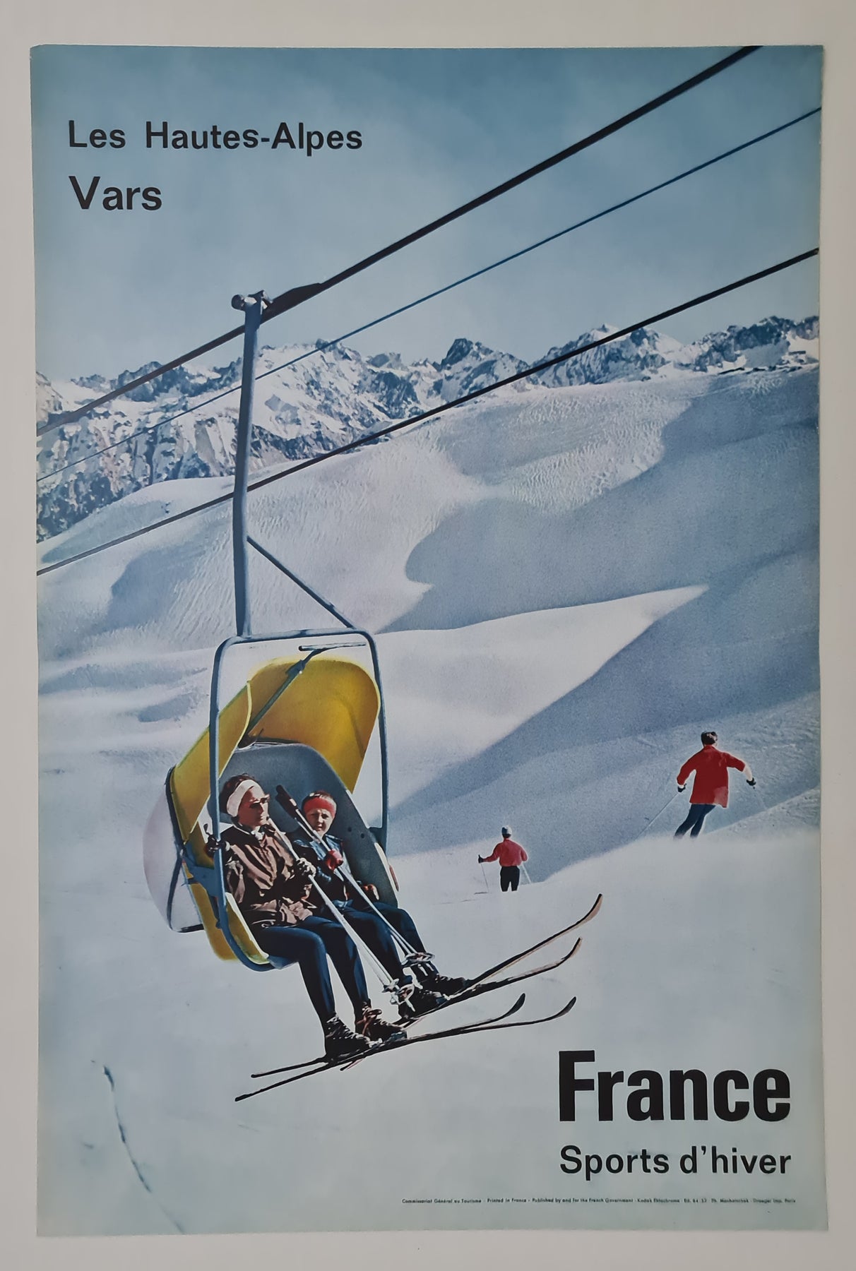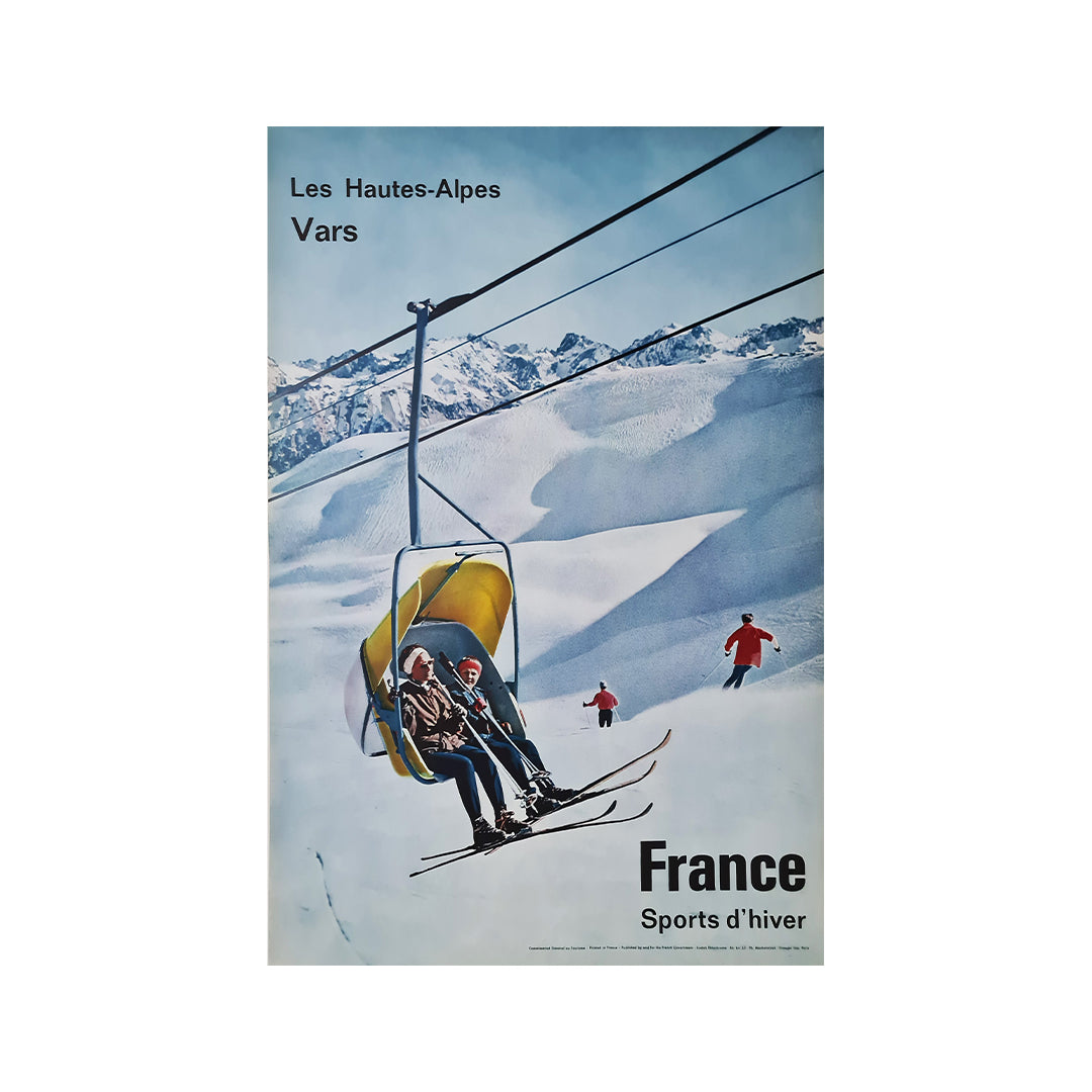 Affiche originale sur le thème des sports d'hiver. Réalisée par Machatchek en 1952, cette affiche avait pour but de promouvoir différentes stations de ski en France.