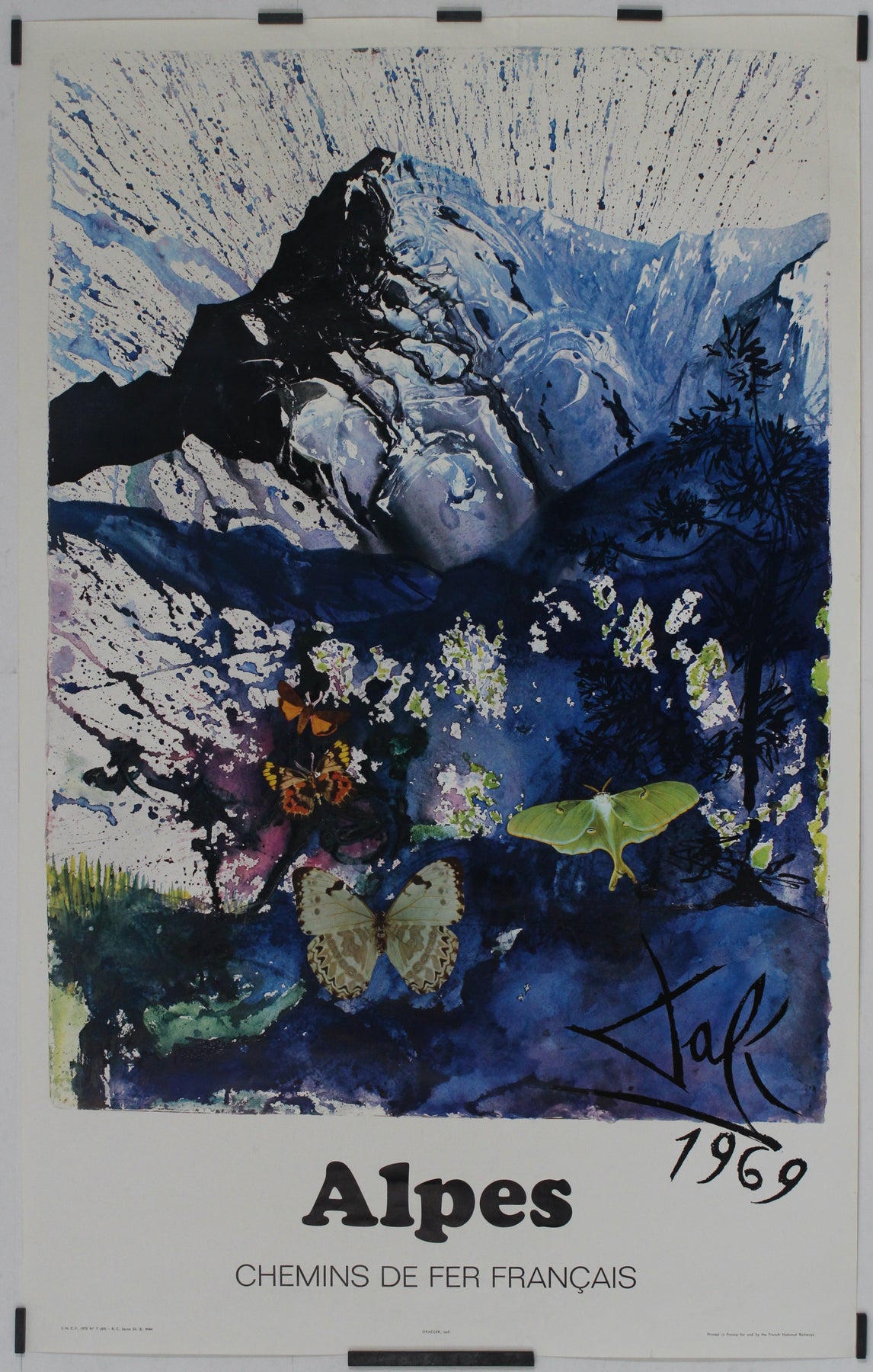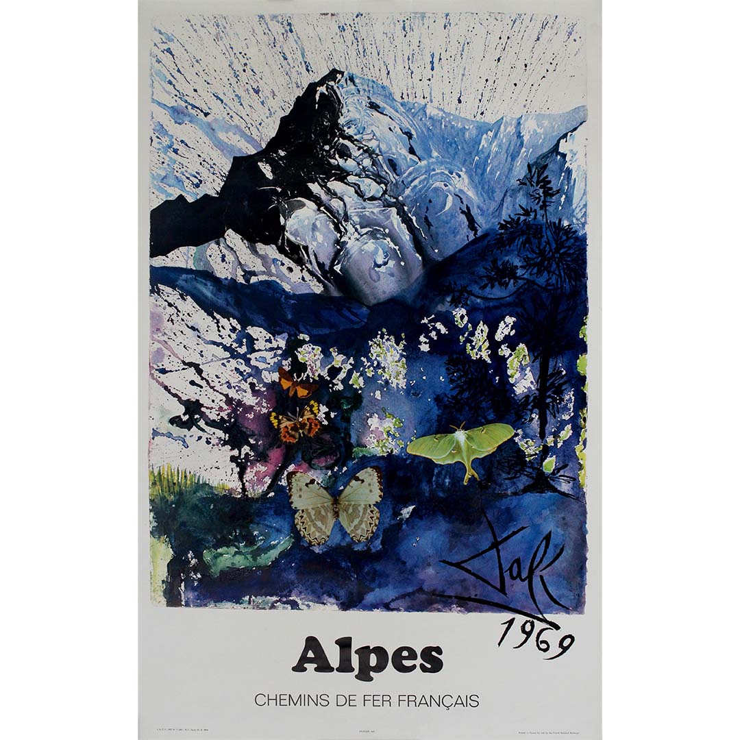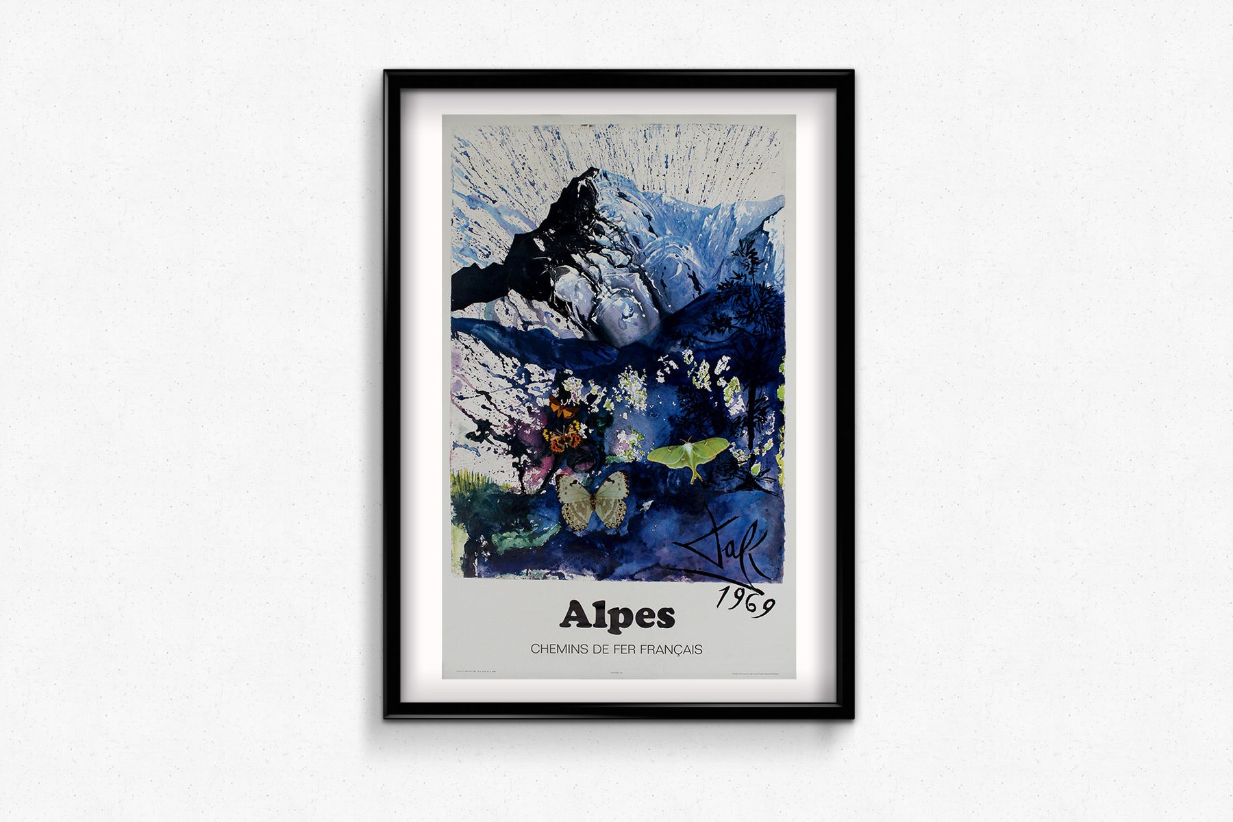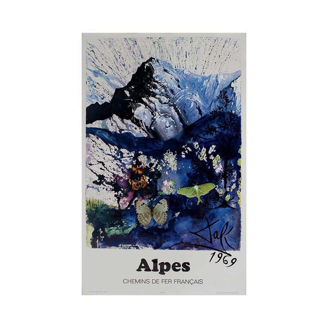 En 1970, la SNCF a commandé au légendaire Salvador Dalí une affiche touristique promouvant les Alpes comme destination de choix. Le résultat est une fusion saisissante de surréalisme et de nature, transformant le paysage alpin en un décor onirique et éthéré.