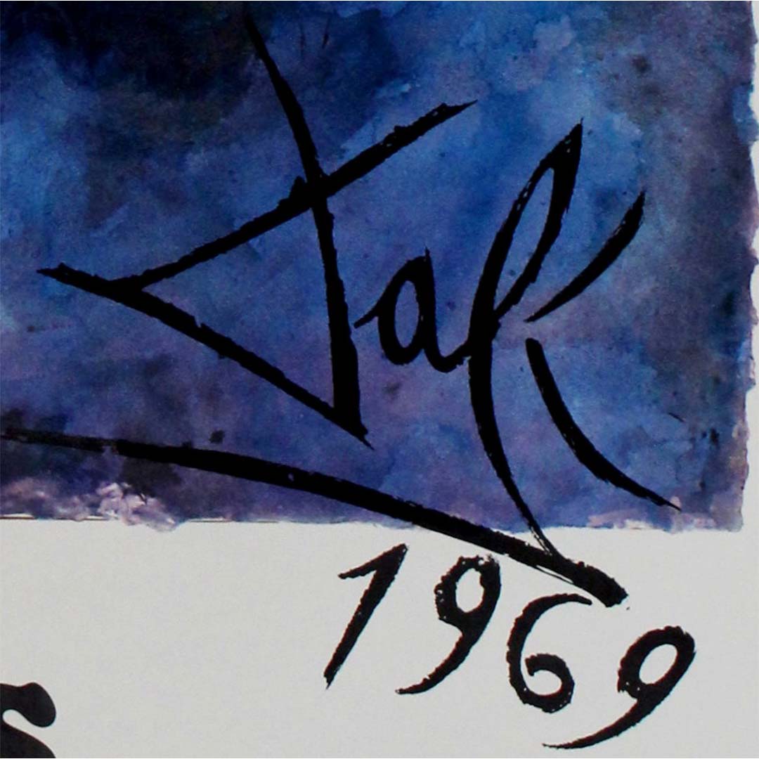 Cette composition incarne la fascination de Dalí pour l'inconscient et l'imagerie onirique, transformant les Alpes d'une simple destination touristique en un royaume de fantaisie et d'émerveillement. Les coups de pinceau dynamiques, les éclaboussures d'encre et les textures organiques brouillent la frontière entre réalité et imagination, renforçant l'esthétique surréaliste. Sa signature audacieuse et la date « 1969 » dans le coin inférieur droit attestent qu'il s'agit d'une création personnelle et singulière.