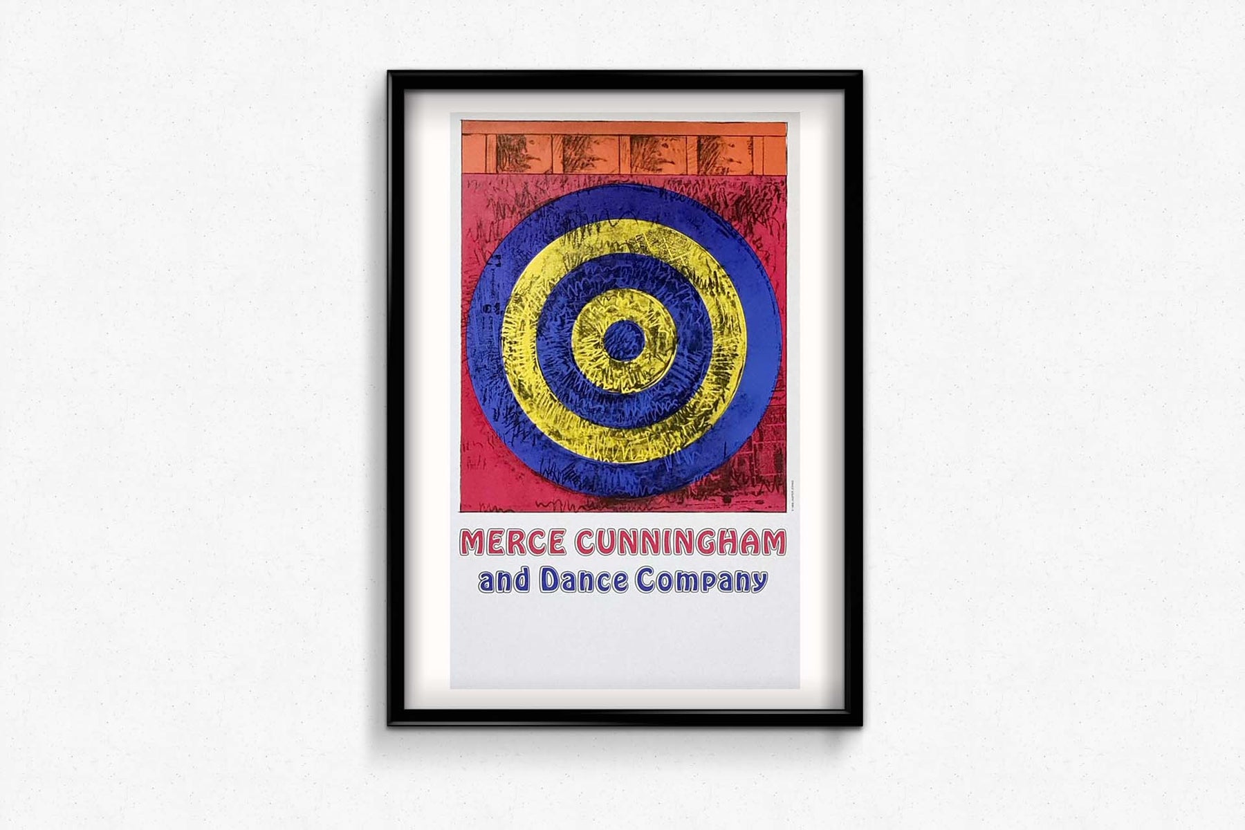 Première édition de l'affiche de Jasper Johns pour son ami Merce Cunningham. Jasper Johns était un peintre, sculpteur et graveur américain dont l'œuvre est associée à l'expressionnisme abstrait, au néo-dadaïsme et au pop art. Mercier Philip « Merce » Cunningham était un danseur et chorégraphe américain qui a été une figure majeure de la danse moderne américaine pendant plus de 50 ans.