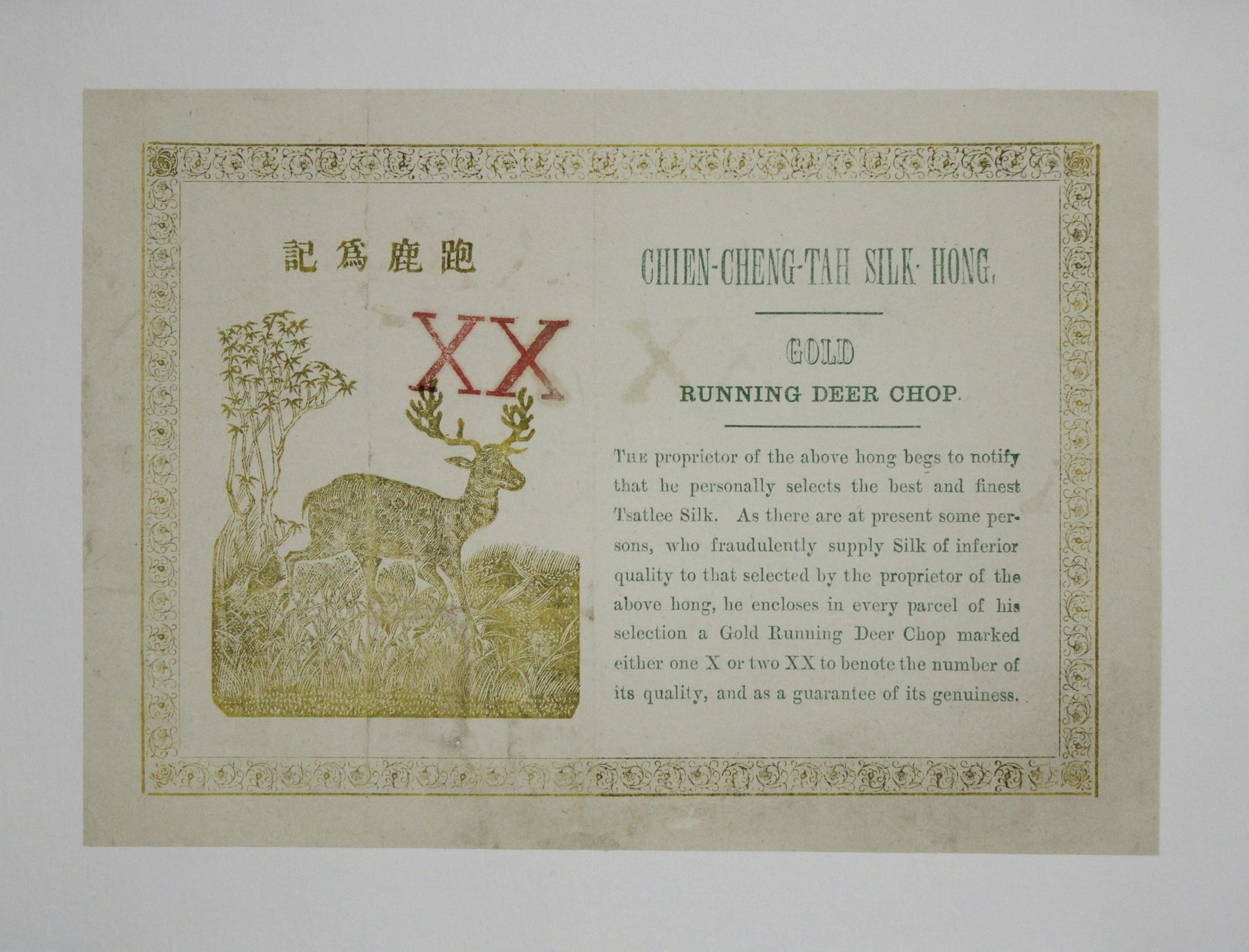 L'inclusion du nom de l'entreprise dans le titre souligne son importance dans le commerce de la soie, « Hong » désignant une maison de commerce – un terme couramment utilisé à cette époque dans le sud de la Chine pour désigner les entreprises marchandes. Cette stratégie de marque visait également à asseoir la crédibilité de l'entreprise et à la distinguer sur un marché concurrentiel.