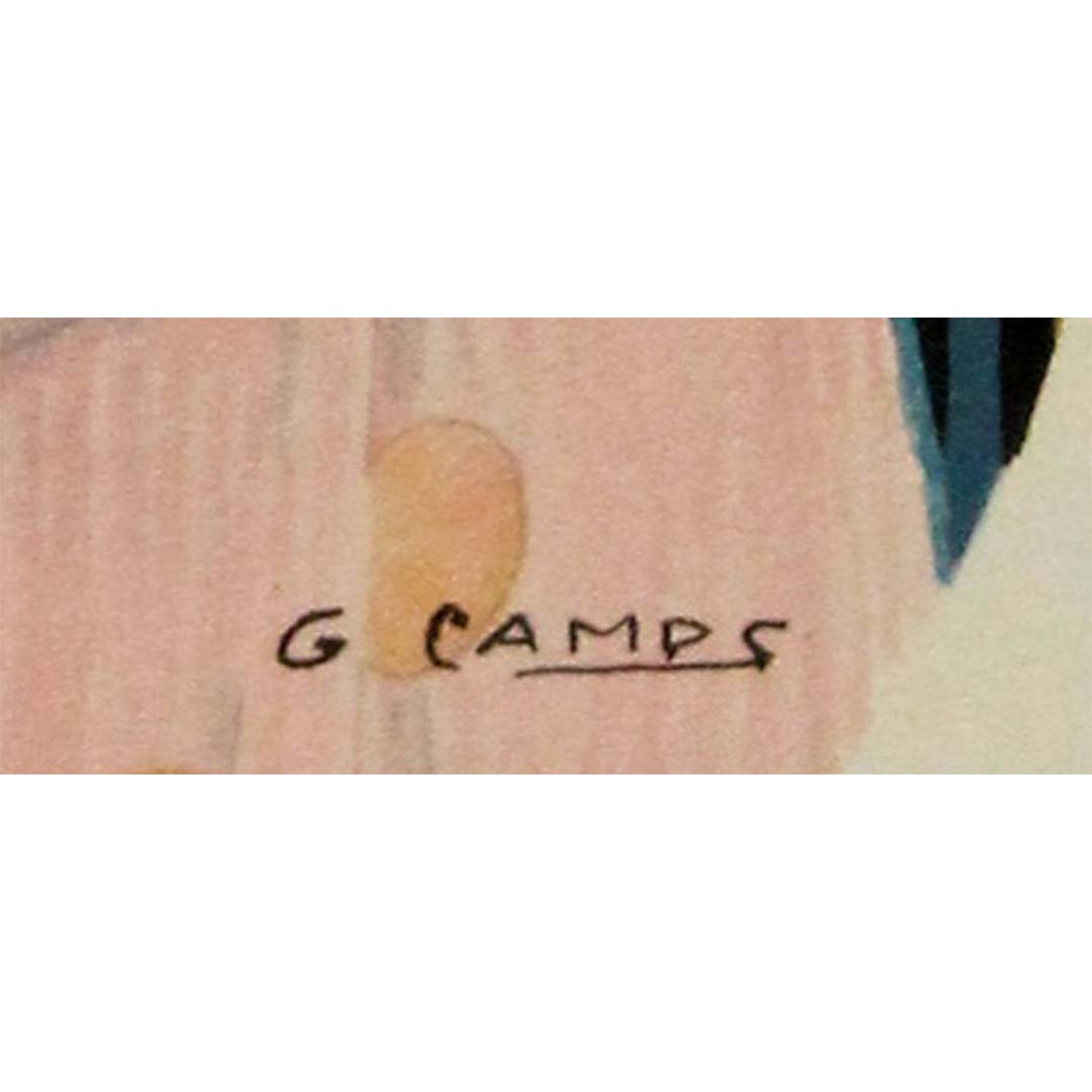 Ses affiches célébraient souvent le glamour et l'élégance de l'époque, avec des lignes épurées et des couleurs éclatantes. Avec Élégante au collier , Camps s'est imposé comme un maître de l'illustration et de l'art publicitaire, alliant expression artistique et impact publicitaire.