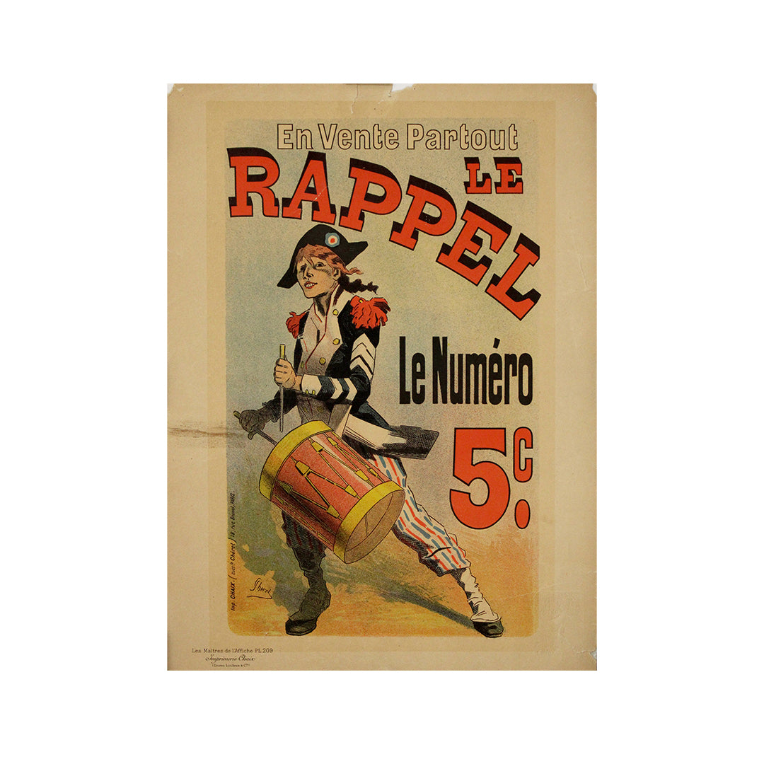 L'affiche représente une batteuse dynamique, vêtue d'un costume révolutionnaire, marchant d'un pas assuré au son de son tambour. Le trait dynamique et la palette éclatante de Chéret soulignent le thème de l'énergie patriotique et de la mobilisation populaire, en parfaite adéquation avec la ligne éditoriale progressiste et républicaine du Rappel sous la Troisième République.