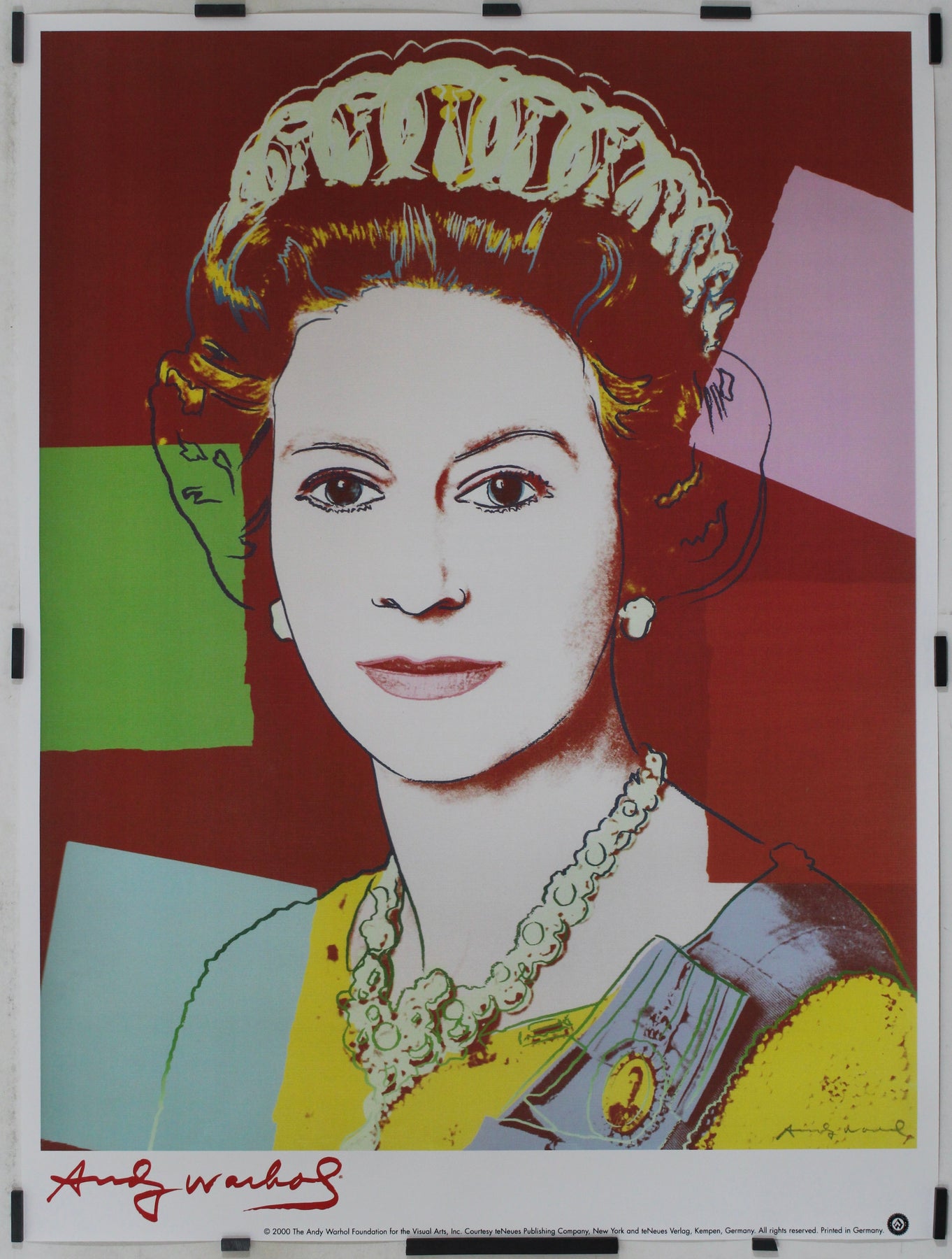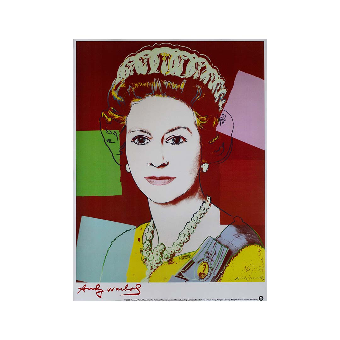 L'affiche représentant la reine Elizabeth II, créée en 2000 par le légendaire artiste Andy Warhol en hommage à la monarque emblématique, témoigne de manière captivante de l'influence durable de Warhol sur l'art contemporain.