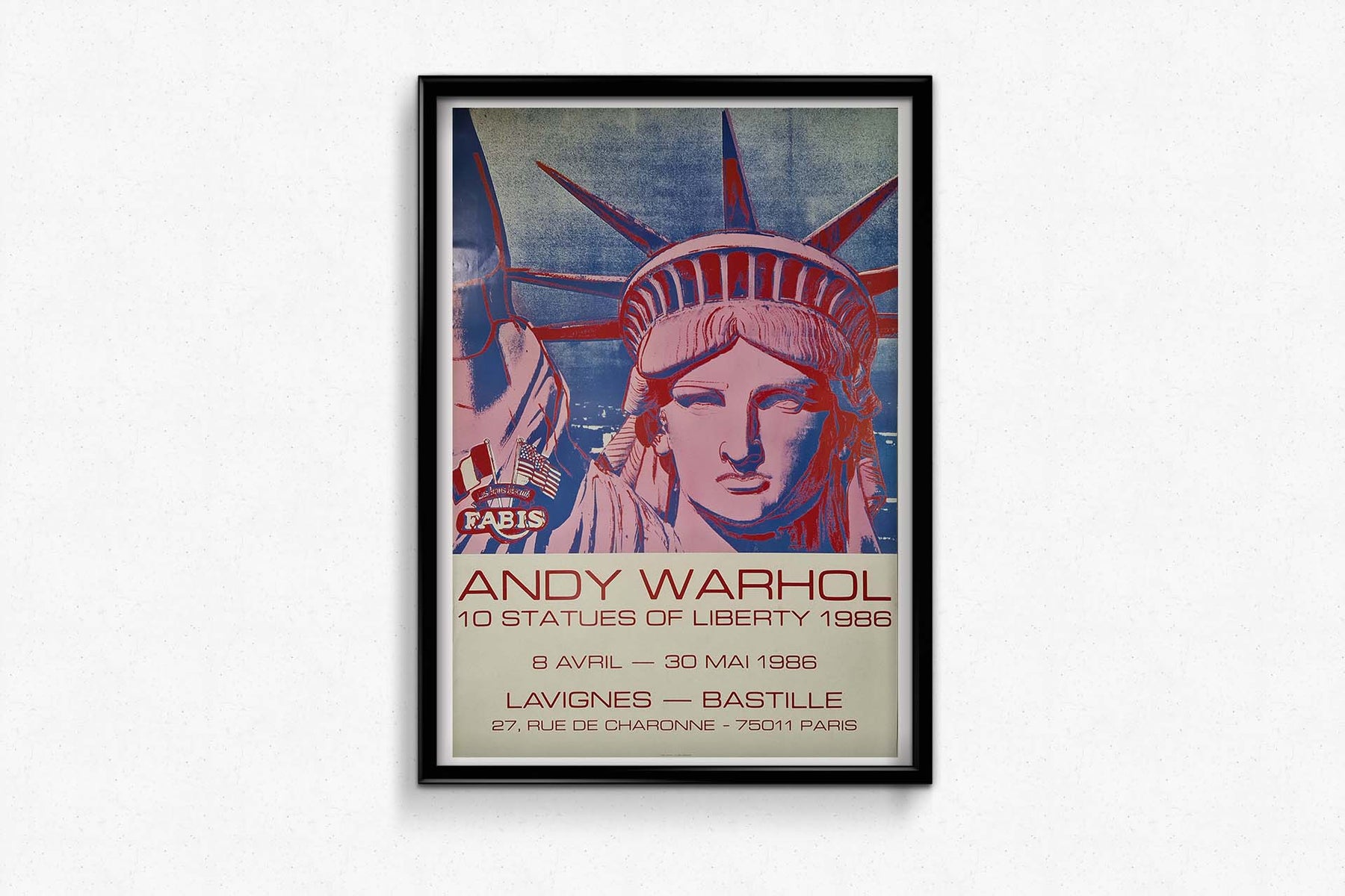 Publiée à l'occasion de l'exposition à la Galerie Lavignes-Bastille du 8 avril au 30 mai 1986, l'affiche invite visuellement à découvrir la vision unique de Warhol sur la Statue de la Liberté. Tirée à moins de 500 exemplaires, cette affiche est une pièce de collection rare, d'autant plus précieuse qu'il s'agit d'une édition limitée réalisée du vivant de l'artiste pour une exposition à laquelle Warhol a assisté personnellement.