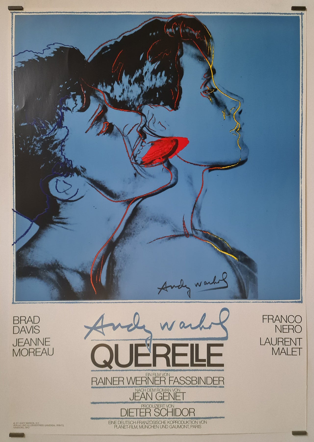 L'affiche originale d'Andy Warhol pour le film « Querelle » (1982) est une fusion fascinante de deux univers artistiques : le cinéma et la culture populaire. Réalisé par le cinéaste allemand Rainer Werner Fassbinder, le film est adapté du roman éponyme de Jean Genet et explore les thèmes du désir, de la sexualité et du mystère.
