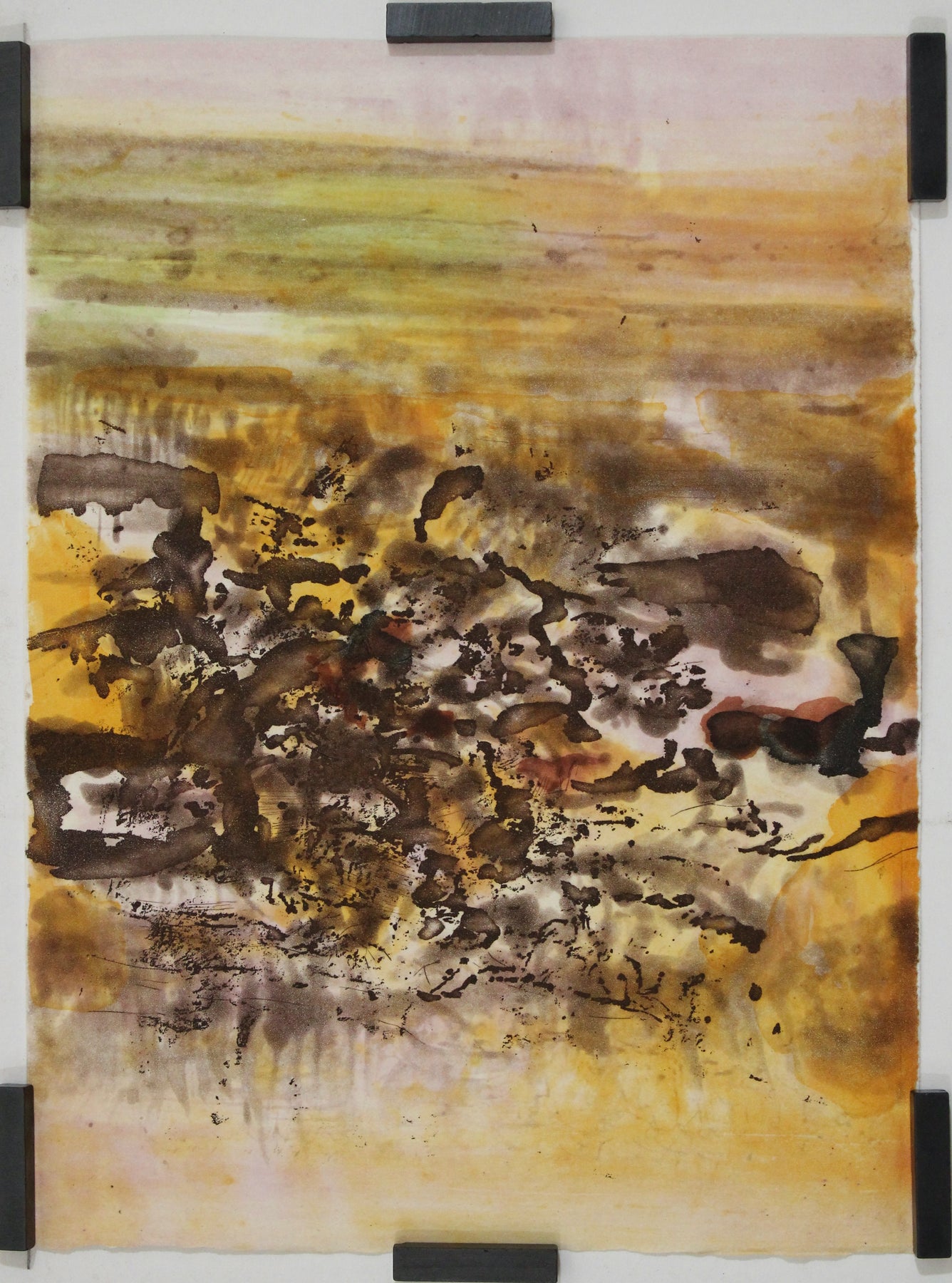 Zao Wou-Ki (1920-2013) était un maître de l'abstraction lyrique, alliant les traditions calligraphiques orientales aux mouvements modernistes occidentaux. Son œuvre évoque souvent une impression de fluidité et d'équilibre entre paysages abstraits et états émotionnels intérieurs. Au moment de cette collaboration, Zao Wou-Ki s'était déjà imposé comme une figure majeure du monde de l'art international, notamment reconnu pour ses estampes et gravures, qui transposèrent son style dynamique à l'échelle intimiste du livre.