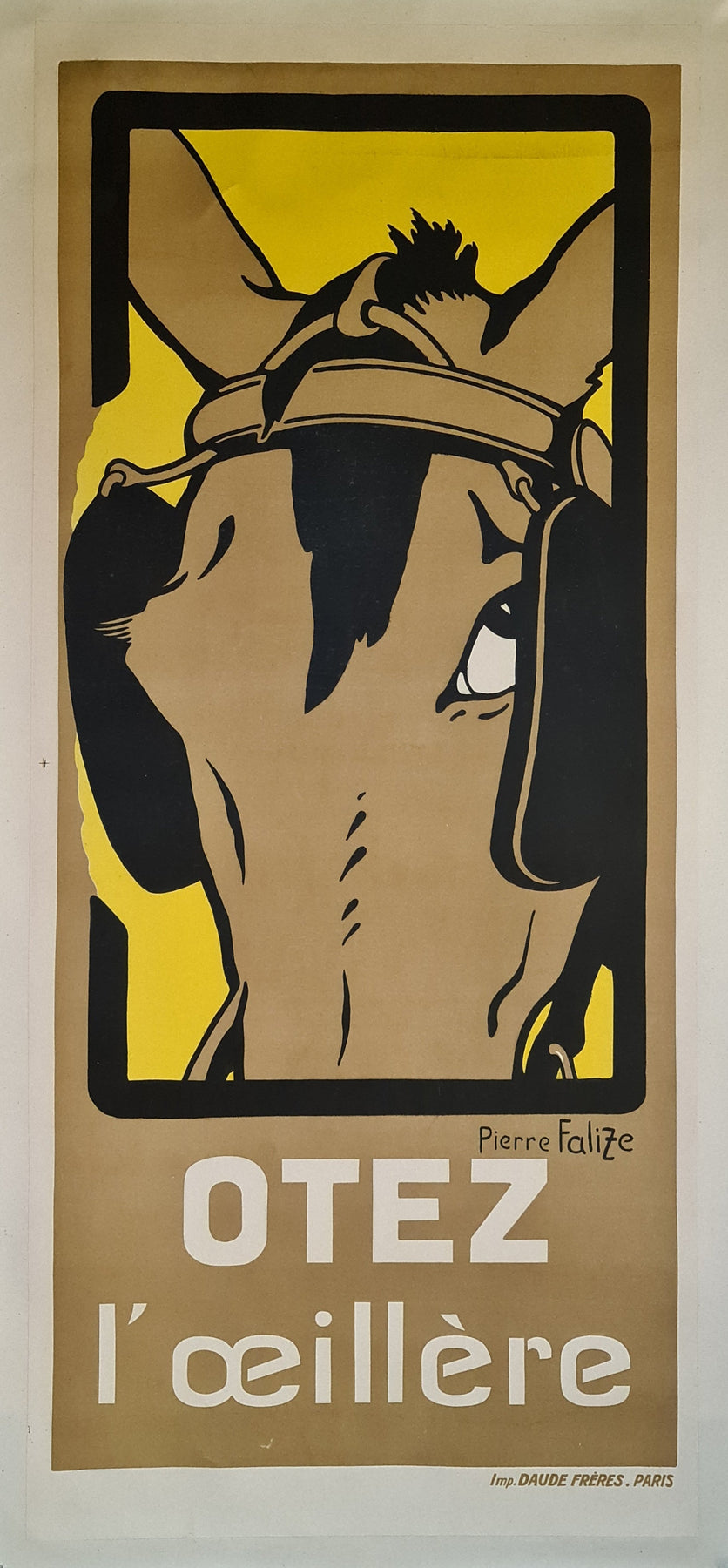 Pierre Falize's circa 1930 poster, featuring the message "Otez l'Oeillère" (Remove the blinders), is a visually striking and thought-provoking artwork that transports us to a pivotal era in history. While Pierre Falize may not be a household name today, this poster's enduring message reminds us of the power of visual communication.