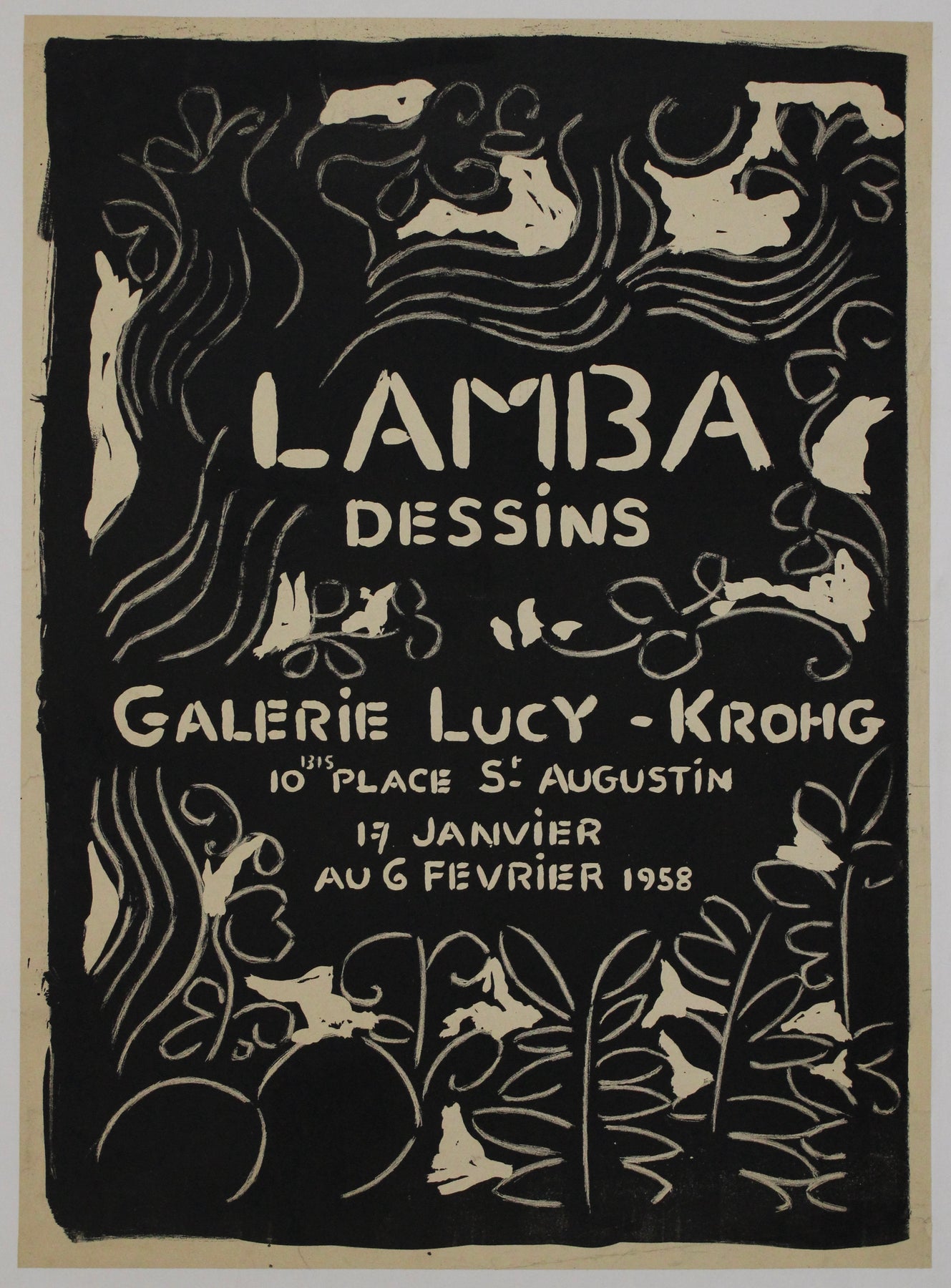 This poster not only serves as a rare artifact of mid-century Parisian avant-garde exhibitions but also stands as a testament to Lamba’s powerful artistic legacy. Collectors of Surrealist ephemera and vintage exhibition posters cherish such pieces for their historical significance and striking visual impact.