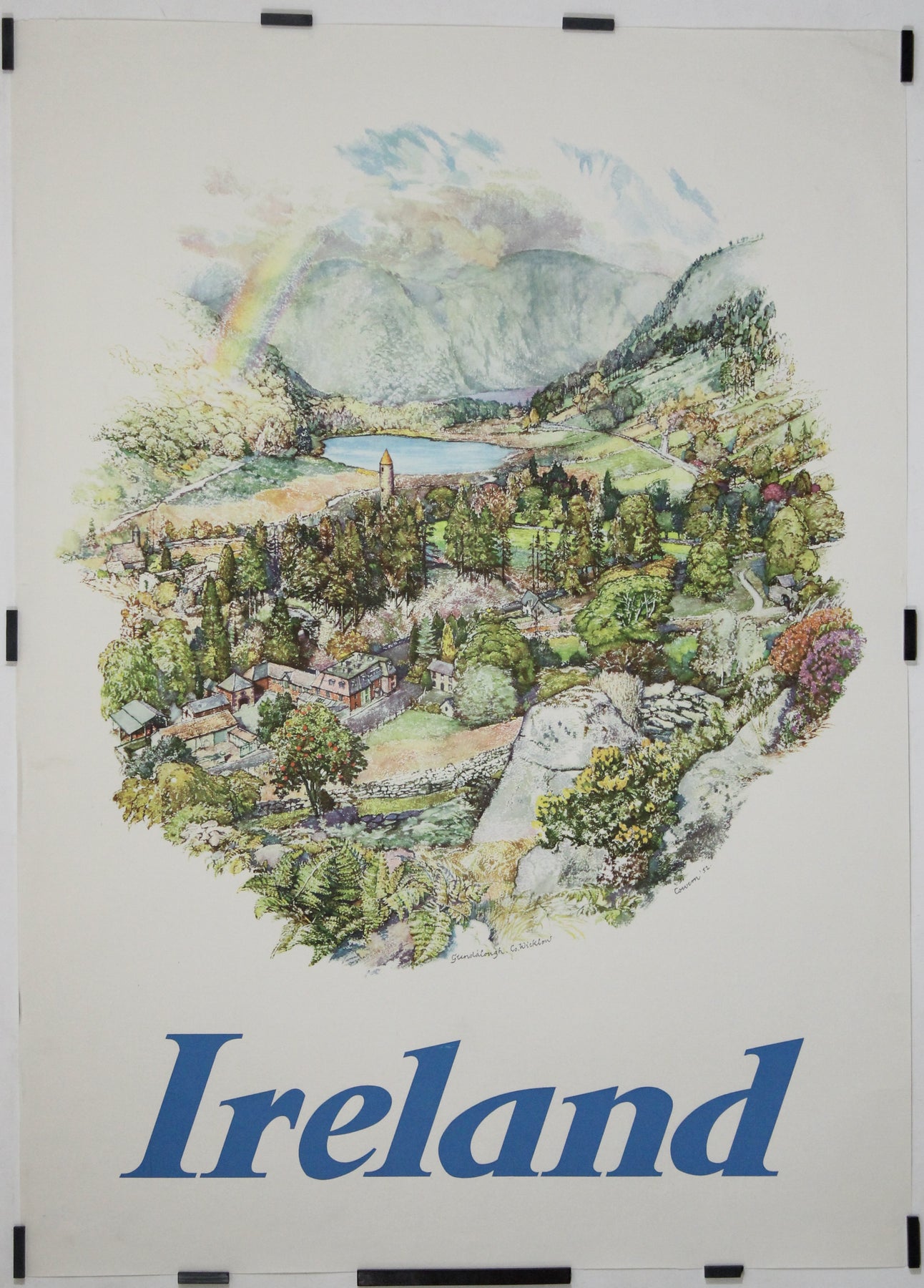 This beautifully illustrated 1952 original poster captures the breathtaking charm of Glendalough, one of Ireland’s most historically and spiritually significant locations. Created by British artist and Royal Academician Raymond Teague Cowern, this work was commissioned by the Irish Tourist Association as part of its post-war campaign to promote tourism through evocative fine art.