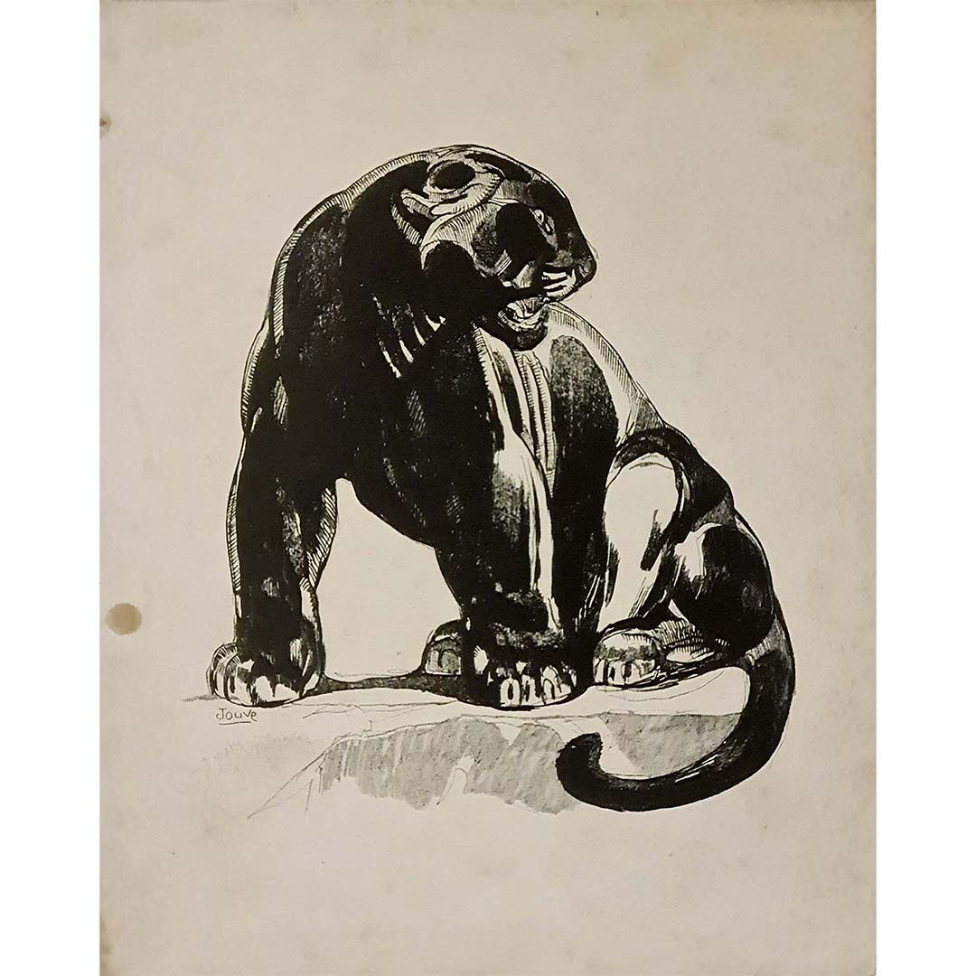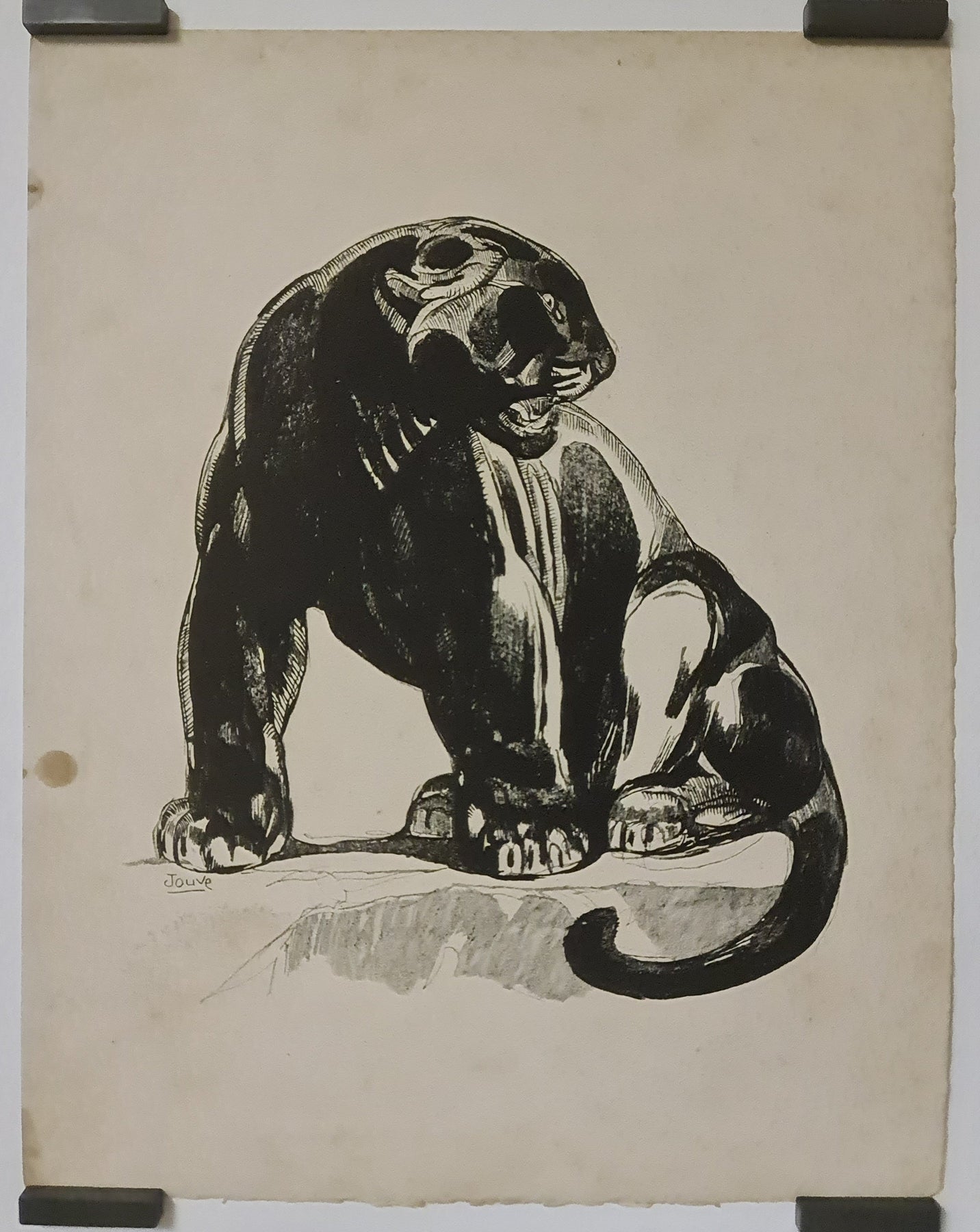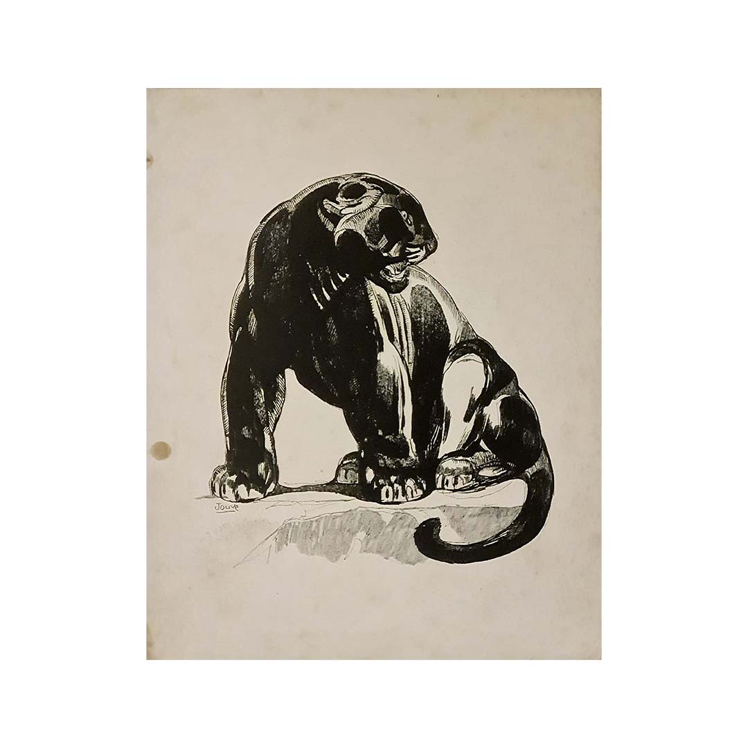 As part of Le Livre de Plantin, this lithograph was more than just art—it was included in a prestigious publication that paired literature and visual works. Jouve’s contribution elevated his reputation as a master of animal portraiture, making this piece a prized collectible. The panther, symbolizing both beauty and danger, resonates with the post-war era's themes of survival and strength. This lithograph remains a stunning example of Jouve’s skill and his enduring artistic legacy.