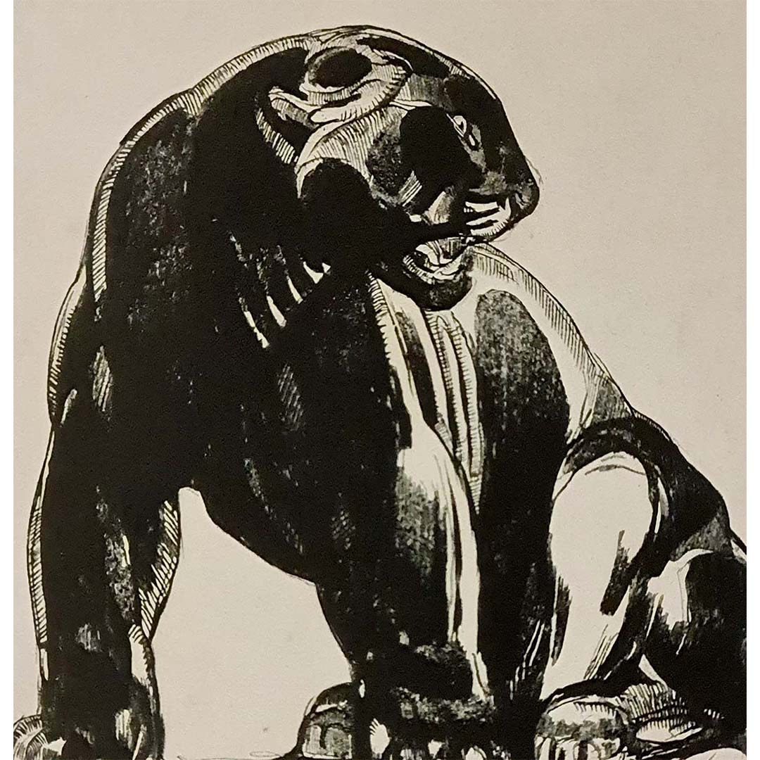 Paul Jouve's 1947 La Panthère Noire is a striking original lithograph, part of the collection created for Le Livre de Plantin. Known for his vivid portrayals of animals, Jouve’s fascination with exotic wildlife shines in this piece. The lithograph depicts a black panther, its muscular form rendered in deep, bold lines. The panther’s sleek body, poised and powerful, captures both its elegance and latent strength.