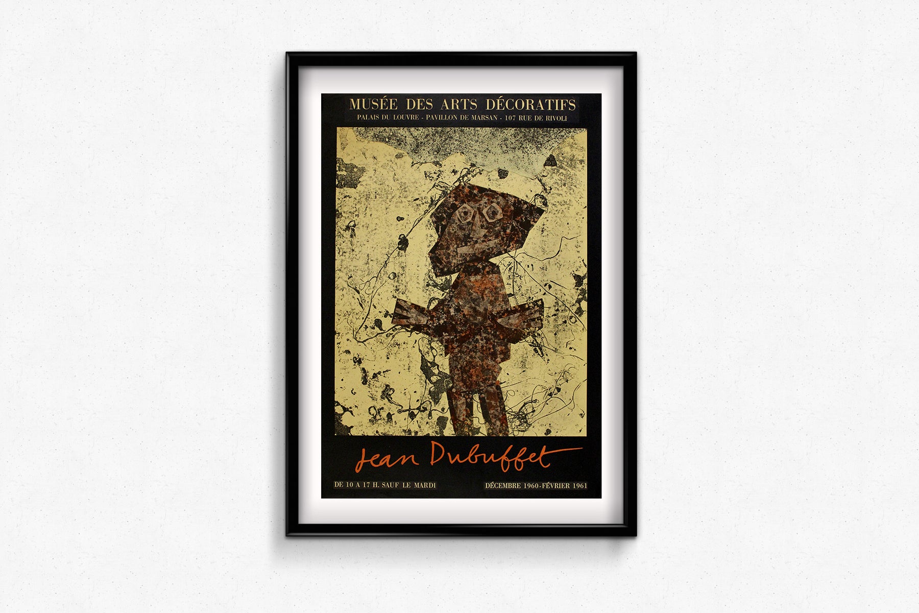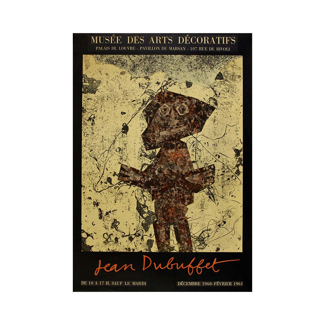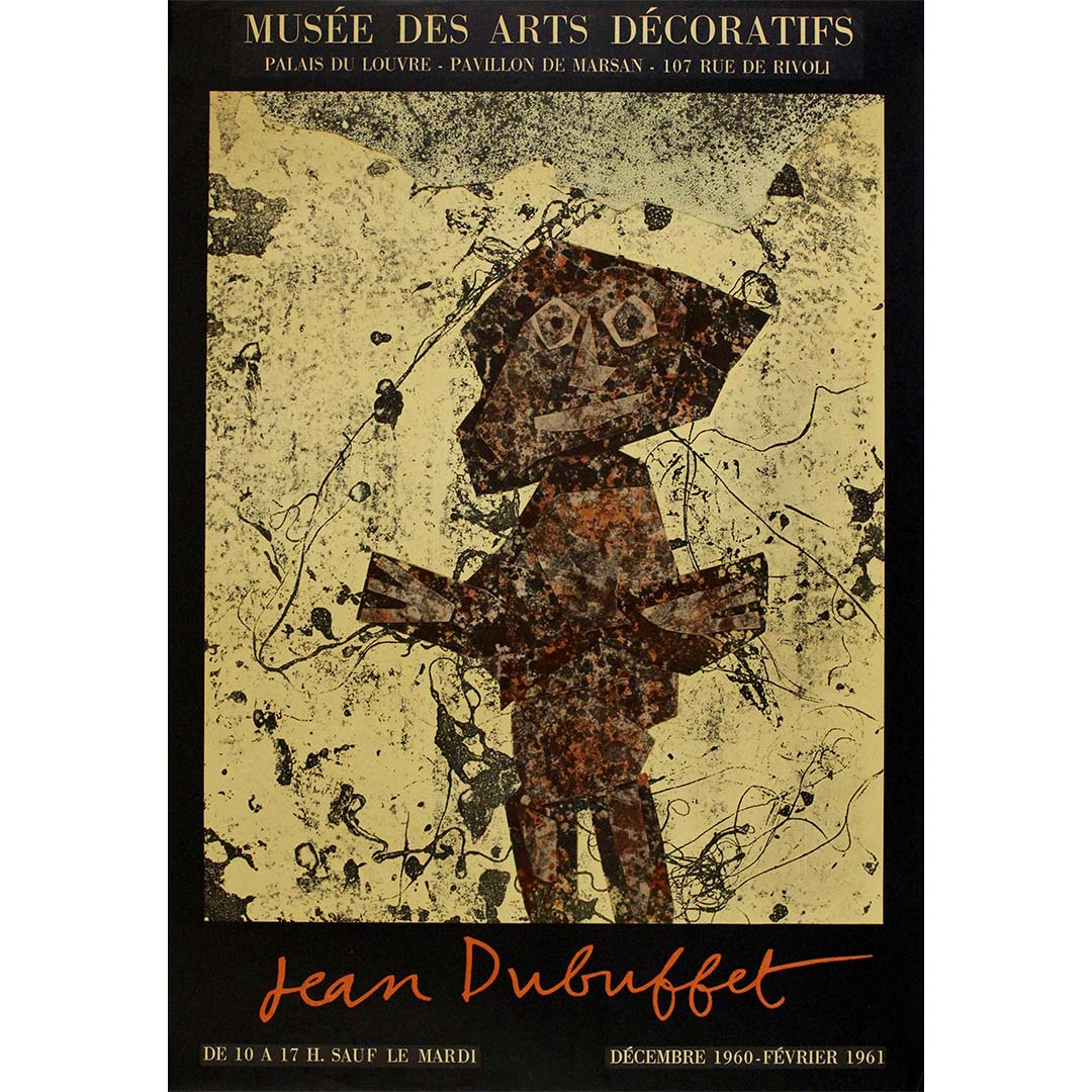 This striking original 1961 exhibition poster was created by Jean Dubuffet himself to promote his major retrospective at the Musée des Arts Décoratifs in Paris. A powerful example of Dubuffet's graphic sensibility, it not only advertised the exhibition but also embodied the very spirit of the artist’s radical vision.