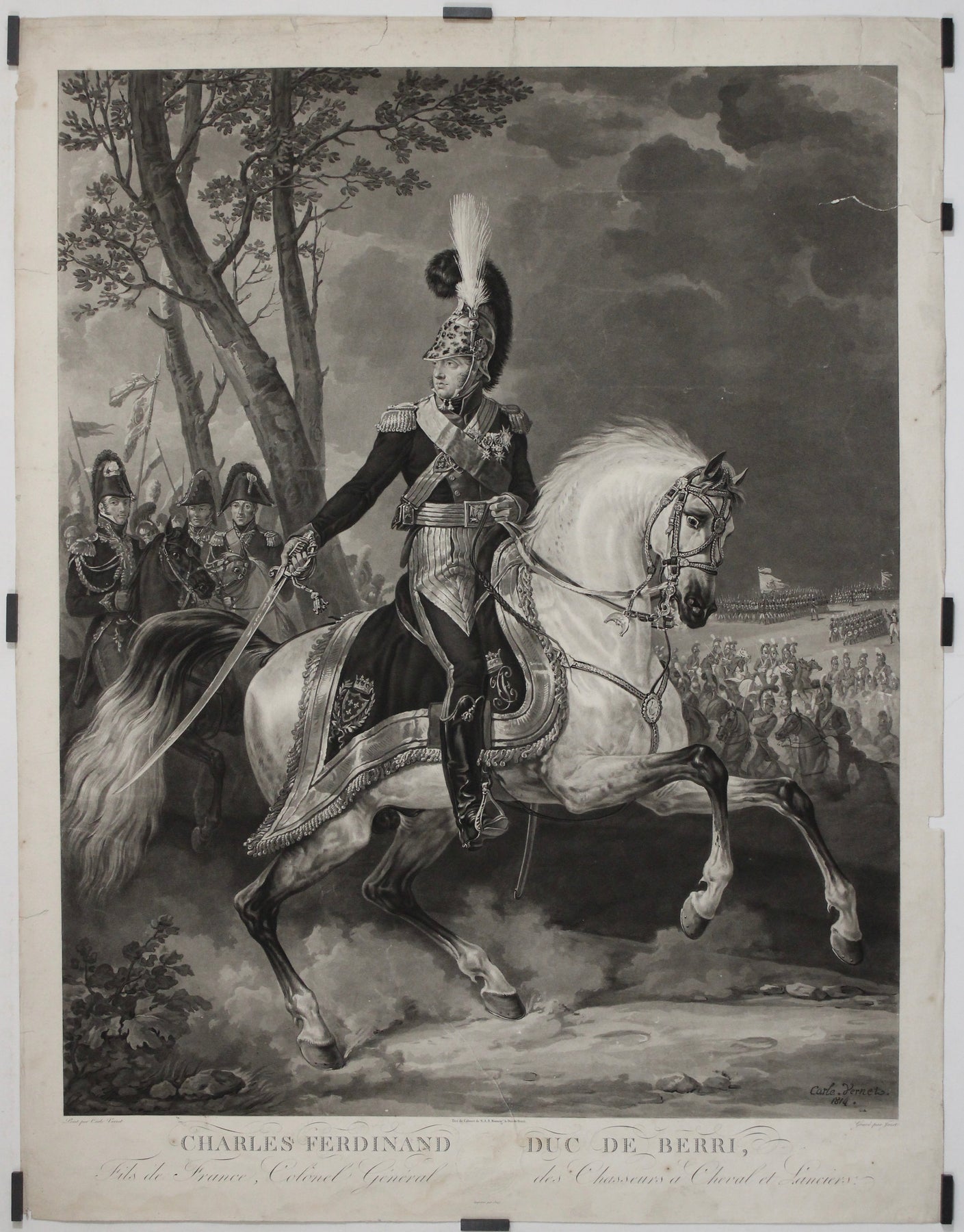 Today, this engraving stands as an evocative document of the Bourbon Restoration period, illustrating both the artistic prestige of Vernet’s equestrian portraits and the political symbolism attached to royal military representation in post-Napoleonic France.
