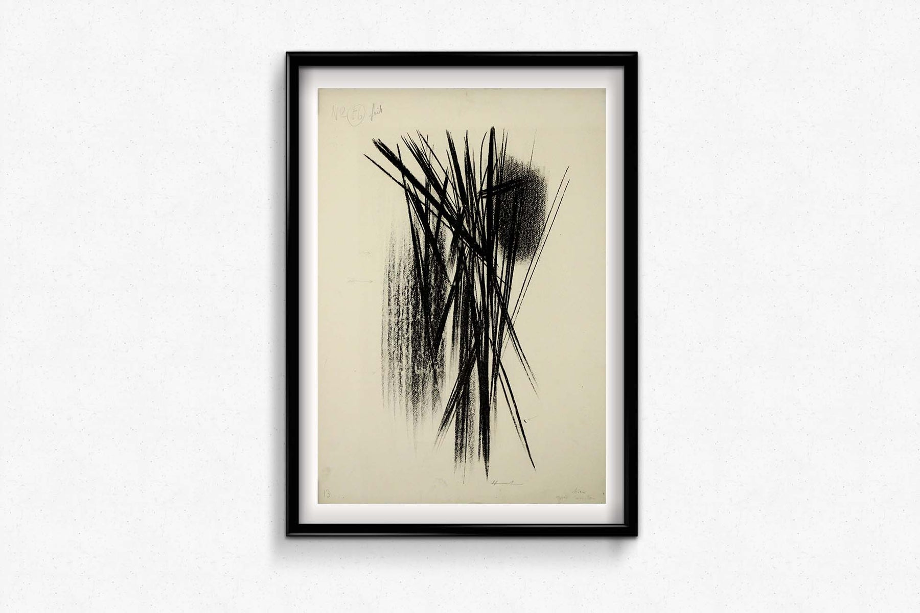 Hans Hartung, a towering figure in 20th-century art, was renowned for his dynamic and gestural abstraction, which pushed the boundaries of traditional artistic techniques. In "Composition noir L56" Hartung employs a striking monochromatic palette dominated by deep, velvety blacks, creating a sense of depth and mystery within the composition.