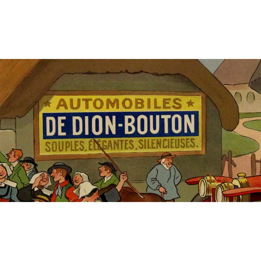 Rendered in vivid colors and animated caricature, the poster reflects the Belle Époque taste for storytelling illustration. Mourgue’s style combines humor with clarity, making the technological message immediately accessible to a broad public. The prominently placed De Dion-Bouton sign emphasizes reliability, silence, and elegance—key selling points at a time when motorcars were still novelties and often viewed with suspicion.