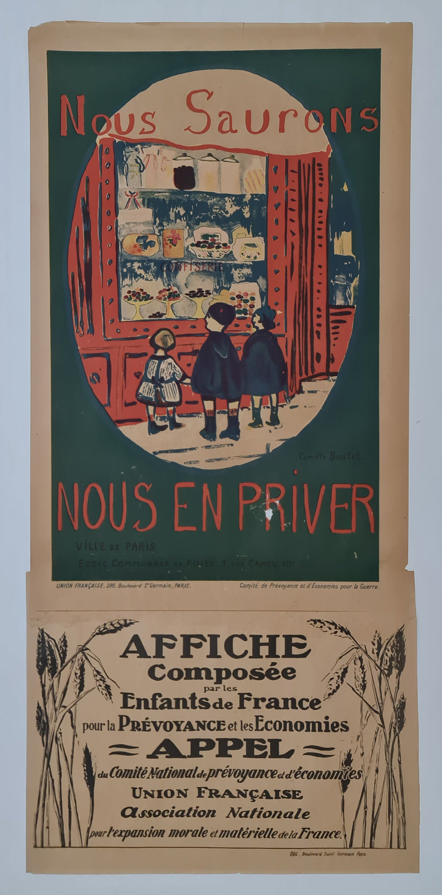 The poster’s message is direct and moving, appealing to the French population's sense of duty and solidarity during a time of rationing and shortages. The phrase "Nous Saurons Nous en Priver" suggests that if children can willingly make sacrifices, so too should the rest of society.