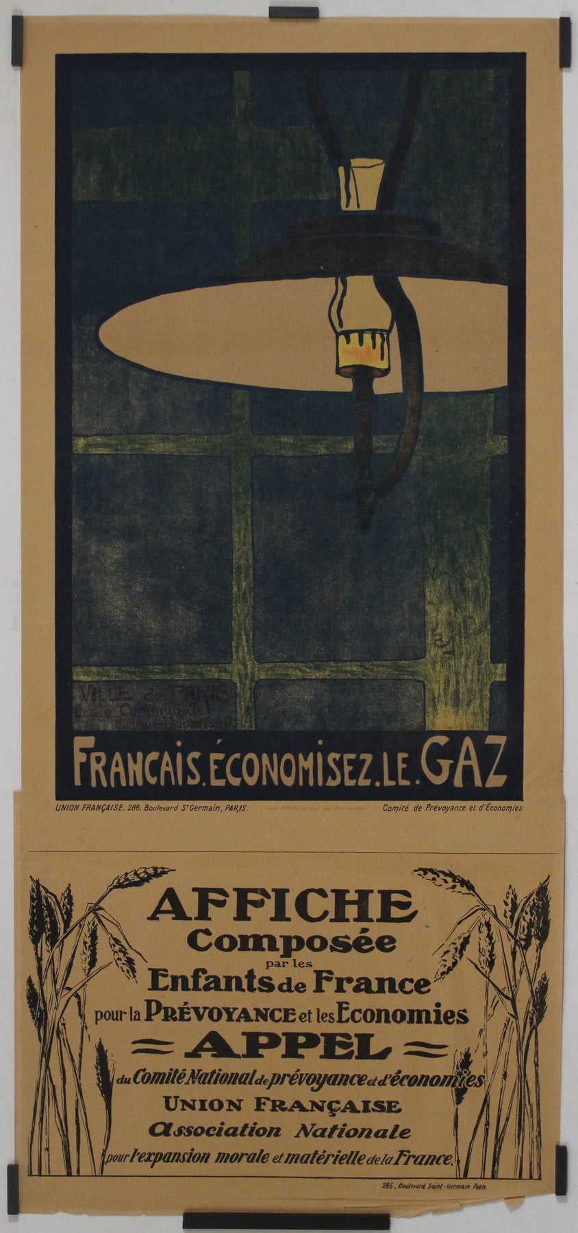 Like other posters in this series, this work was "Composée par les Enfants de France" ("Composed by the Children of France"), reinforcing how wartime frugality was instilled in the younger generation. The explanatory bandeau at the bottom, issued by the Comité National de Prévoyance et d'Économies and the Union Française, further underscores the nationwide campaign for economic discipline.