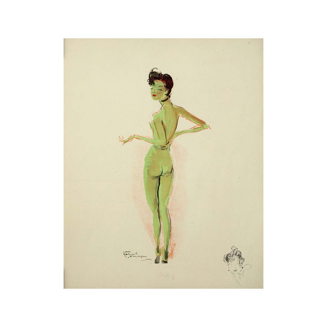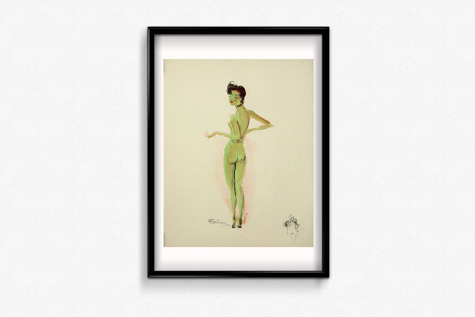 Domergue’s work is highly regarded for its combination of Art Deco influences and the modernist exploration of the human figure. His portraits were not just about visual likeness but also about capturing the essence of the era’s aesthetic sensibilities, where elegance, beauty, and femininity were paramount. As an artist of the post-war era, Domergue was heavily involved in the world of fashion, society, and high culture, and his works often reflected these interests, creating an aspirational image of Parisian life.