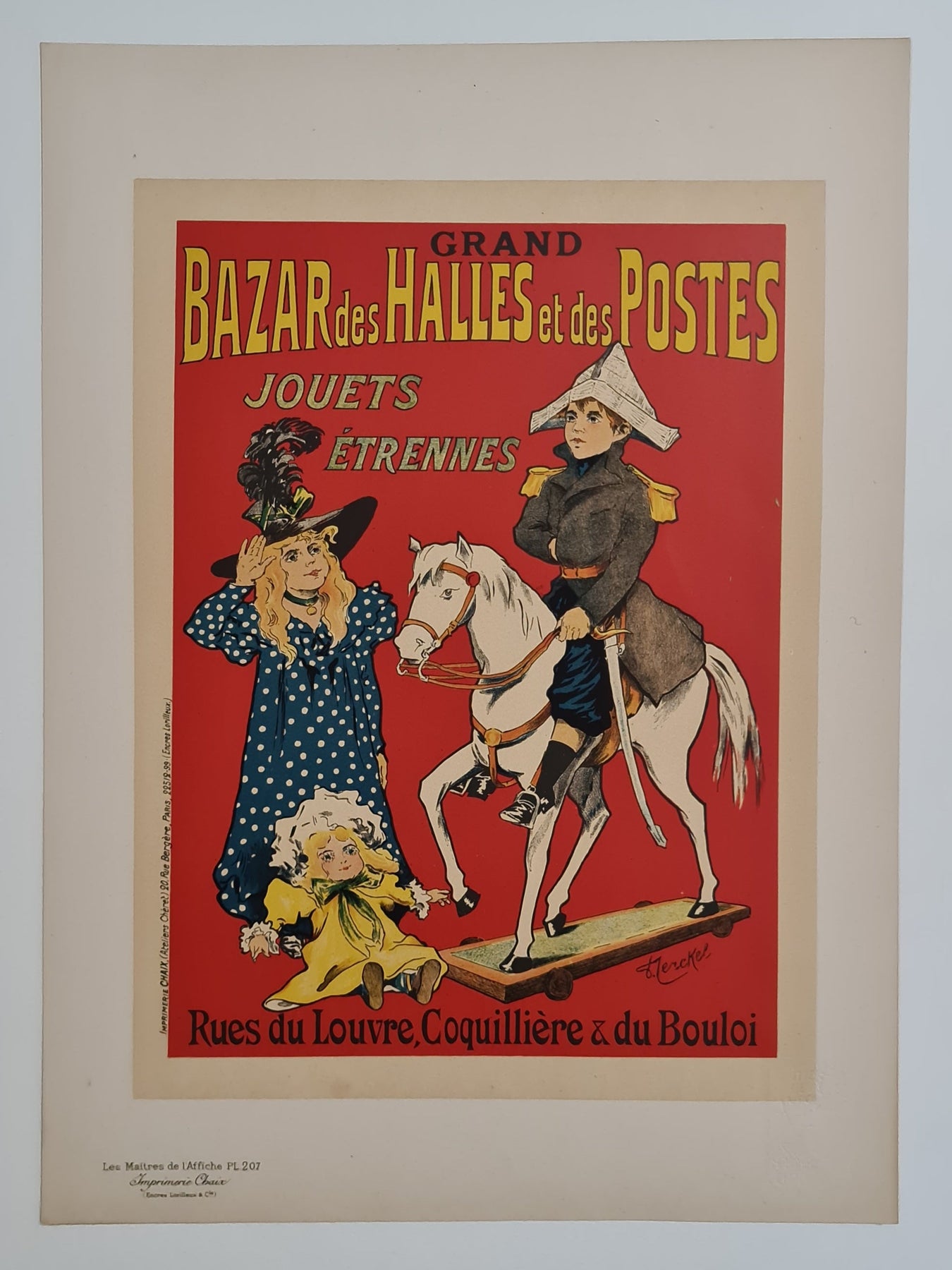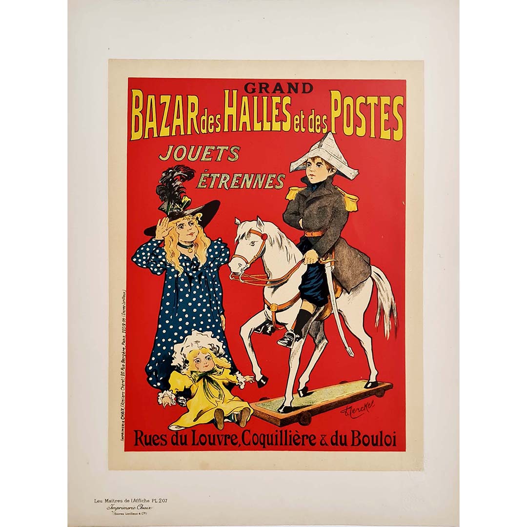 This poster was produced for the "Grand Bazar des Halles et des Postes" stores, to mark the Etrennes.