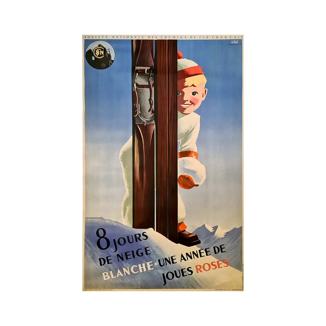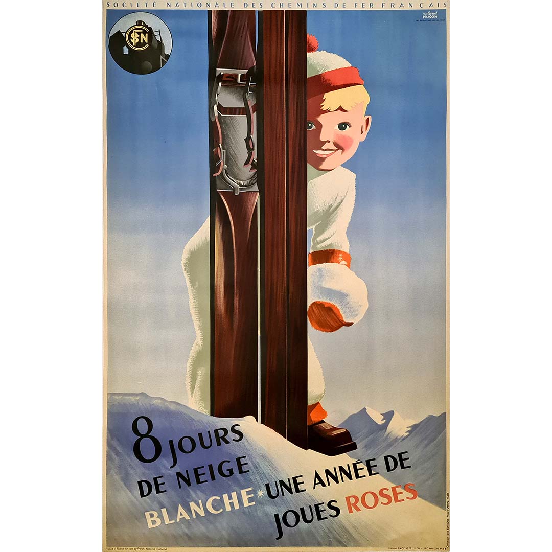 The slogan, "8 Jours de Neige Blanche – Une Année de Joues Roses" (translated as "8 Days of White Snow – A Year of Rosy Cheeks"), cleverly suggests that a short winter holiday will bring long-lasting health benefits, energy, and happiness. This reflects the era’s growing enthusiasm for outdoor recreation, skiing culture, and the idea of winter sports as a way to rejuvenate the body and mind.