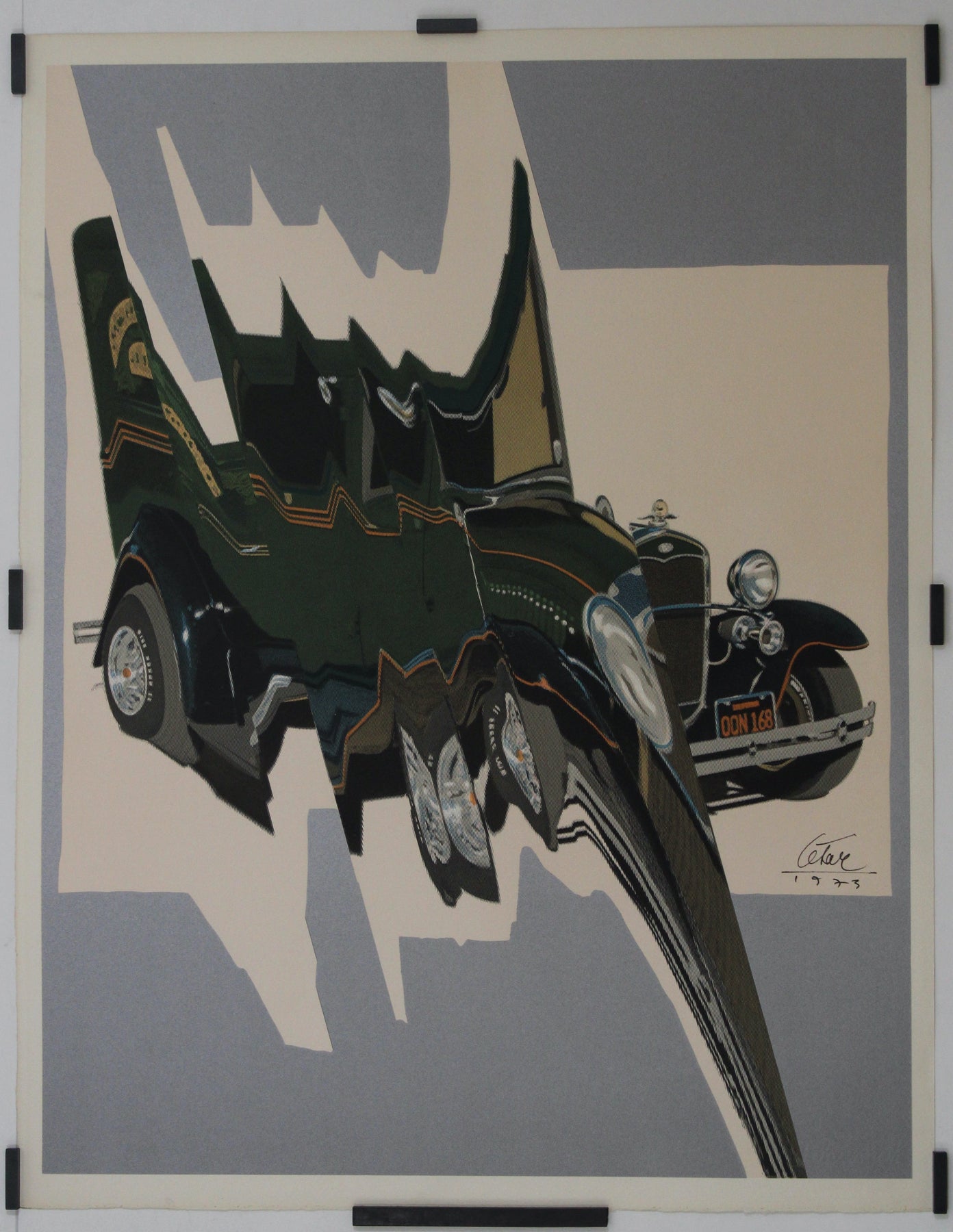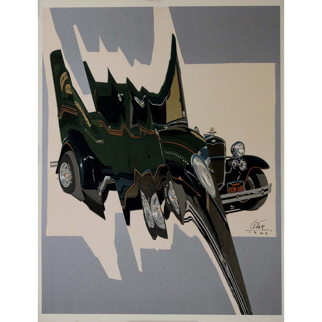 "Compression de Bugatti" showcases César's signature style, where he uses compression as a means to reconfigure and reinterpret the shapes of objects. This piece features the iconic Bugatti, a symbol of luxury and engineering excellence, in a compressed form. The lithography not only pays homage to the elegance and prestige of the Bugatti but also transforms it into a piece of abstract art that challenges the viewer’s perception of form and function.