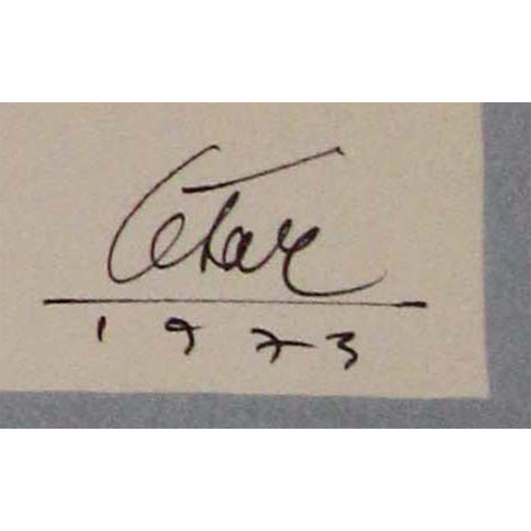 The 1973 original lithography "Compression de Bugatti" by César Baldaccini, more commonly known as César, is a striking piece of modern art that reflects the artist's unique approach to sculptural and graphic forms. César, a renowned French sculptor born in 1921, became famous for his innovative techniques and the transformative nature of his work. His fascination with industrial materials and processes is vividly captured in this lithography.
