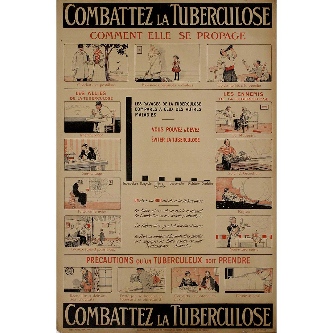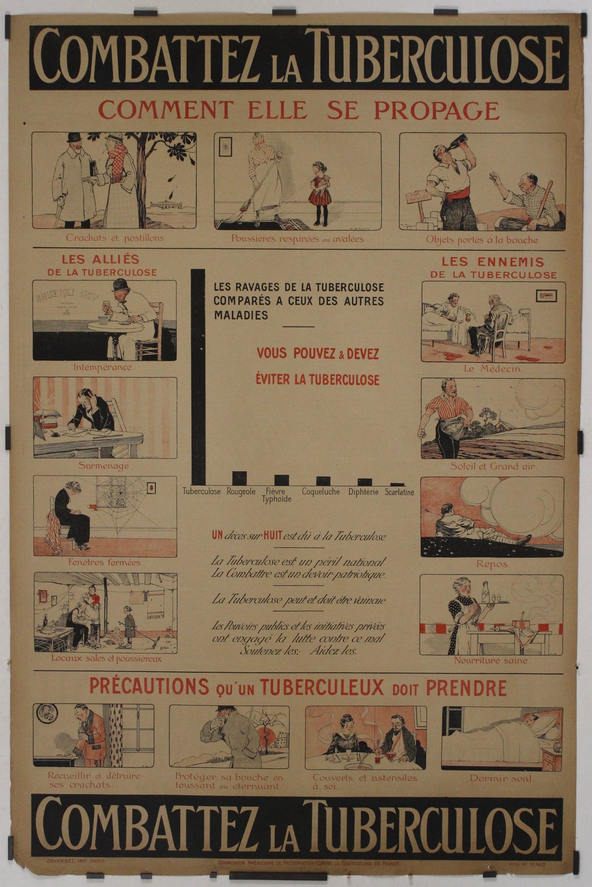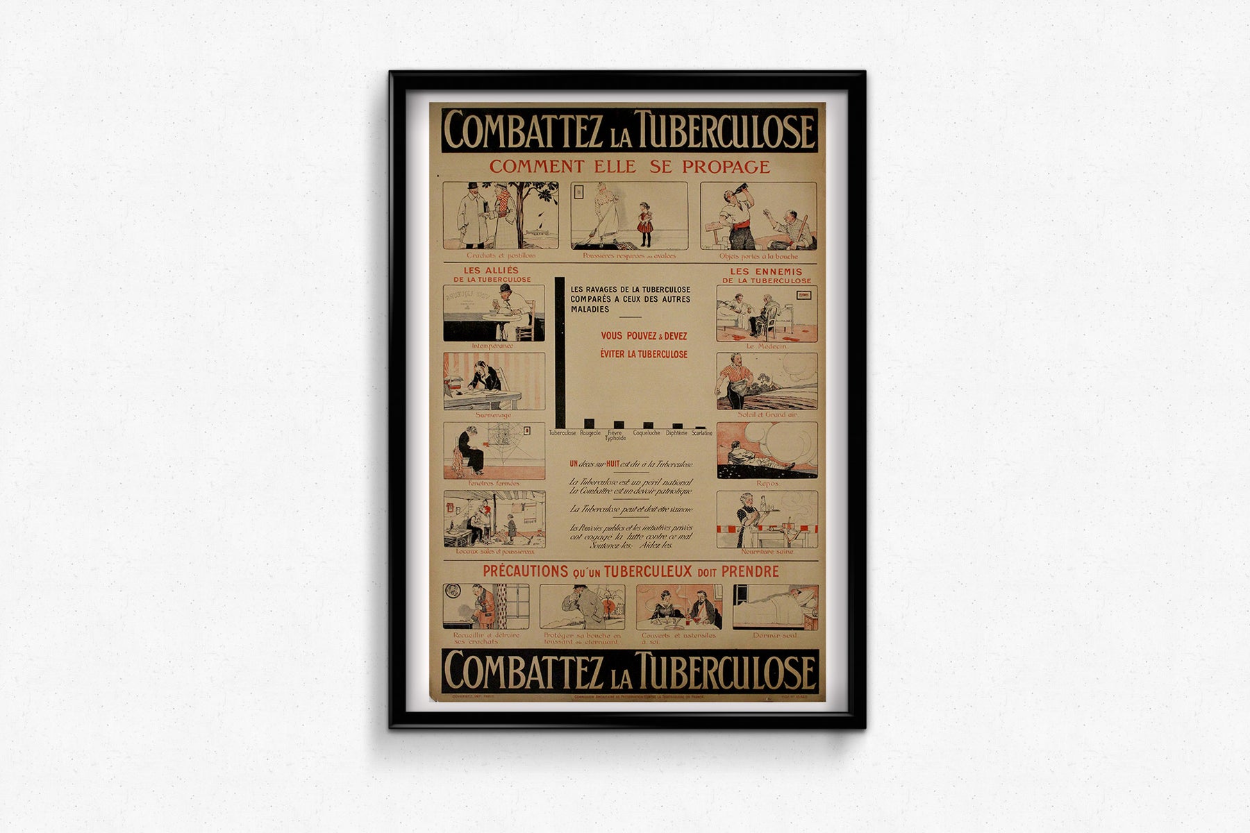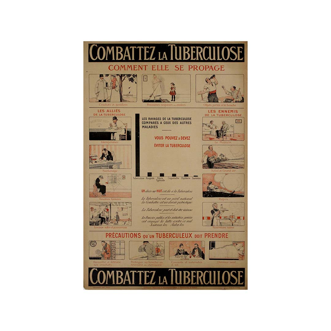 The slogan “Combattez la Tuberculose” (Fight Tuberculosis) underscores the urgency of the message and reflects the period’s growing emphasis on collective responsibility in public health. The campaign likely aimed to educate the public on preventative measures, which included improved hygiene, proper nutrition, and early detection. During this era, public health authorities sought to bridge the gap between limited medical resources and the pressing need to curb the spread of infectious diseases, relying heavily on awareness campaigns like this one.