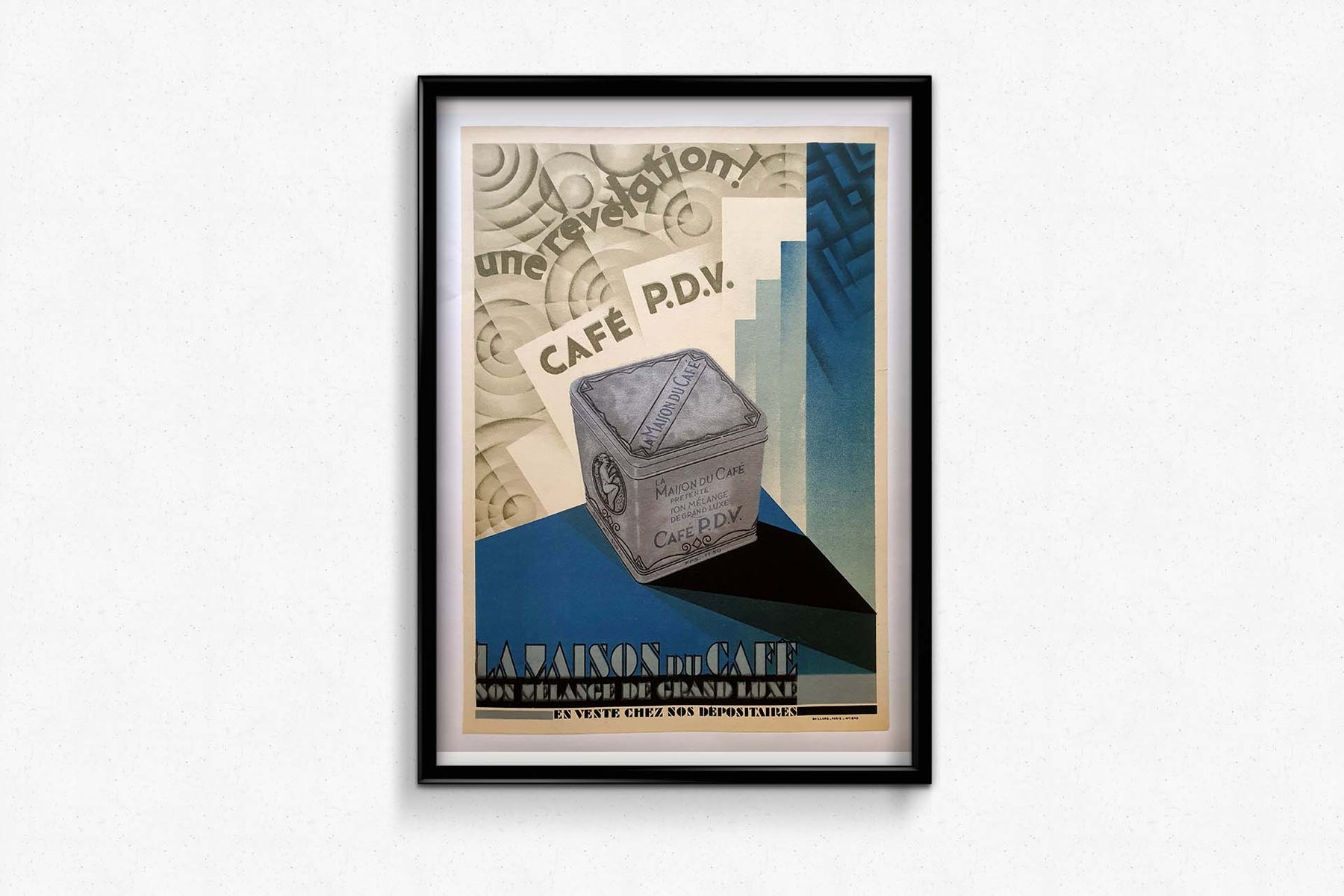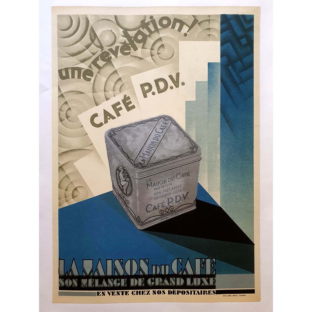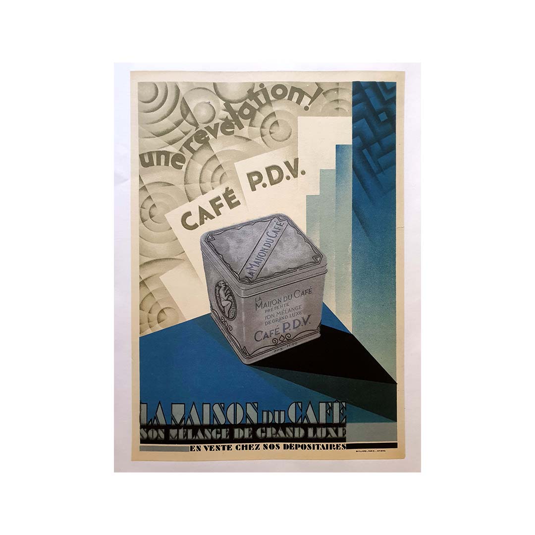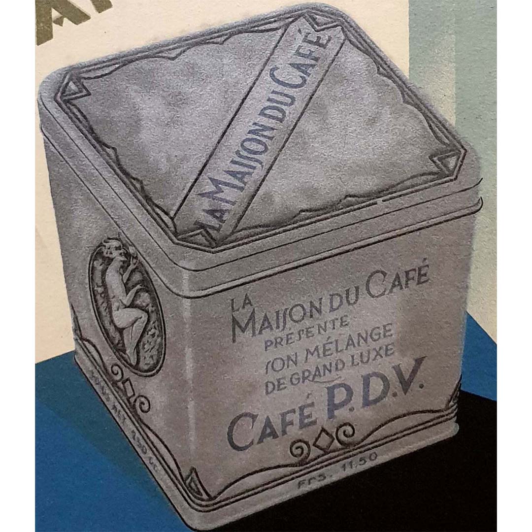 Dans les années 1930, les affiches étaient un puissant outil publicitaire, exploitant le talent artistique pour influencer le comportement des consommateurs. Cette affiche du Café PDV ne fait pas exception, utilisant l'art pour créer un lien émotionnel avec le spectateur. L'image suggère que choisir le Café PDV, c'est opter pour une expérience café d'exception, synonyme de confort, de plaisir et d'une touche d'élégance dans chaque tasse.